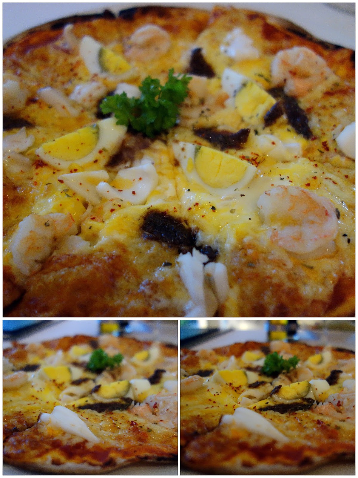 We might recommend, to a certain degree, the build-your-own pizza, which we topped with egg (turned out to be hard-boiled), shrimp (cant complain) & anchovies (salty, but thats no surprise).