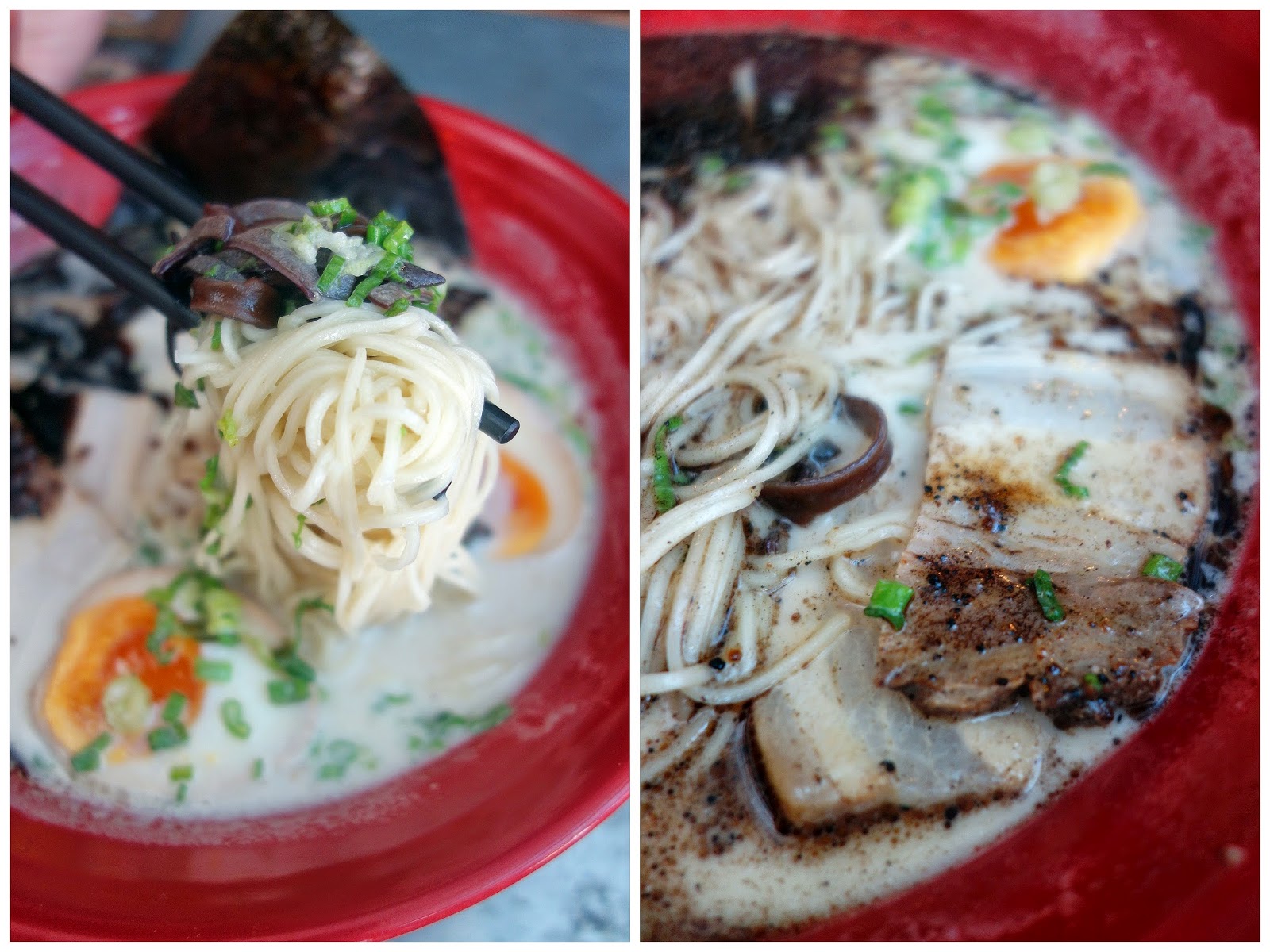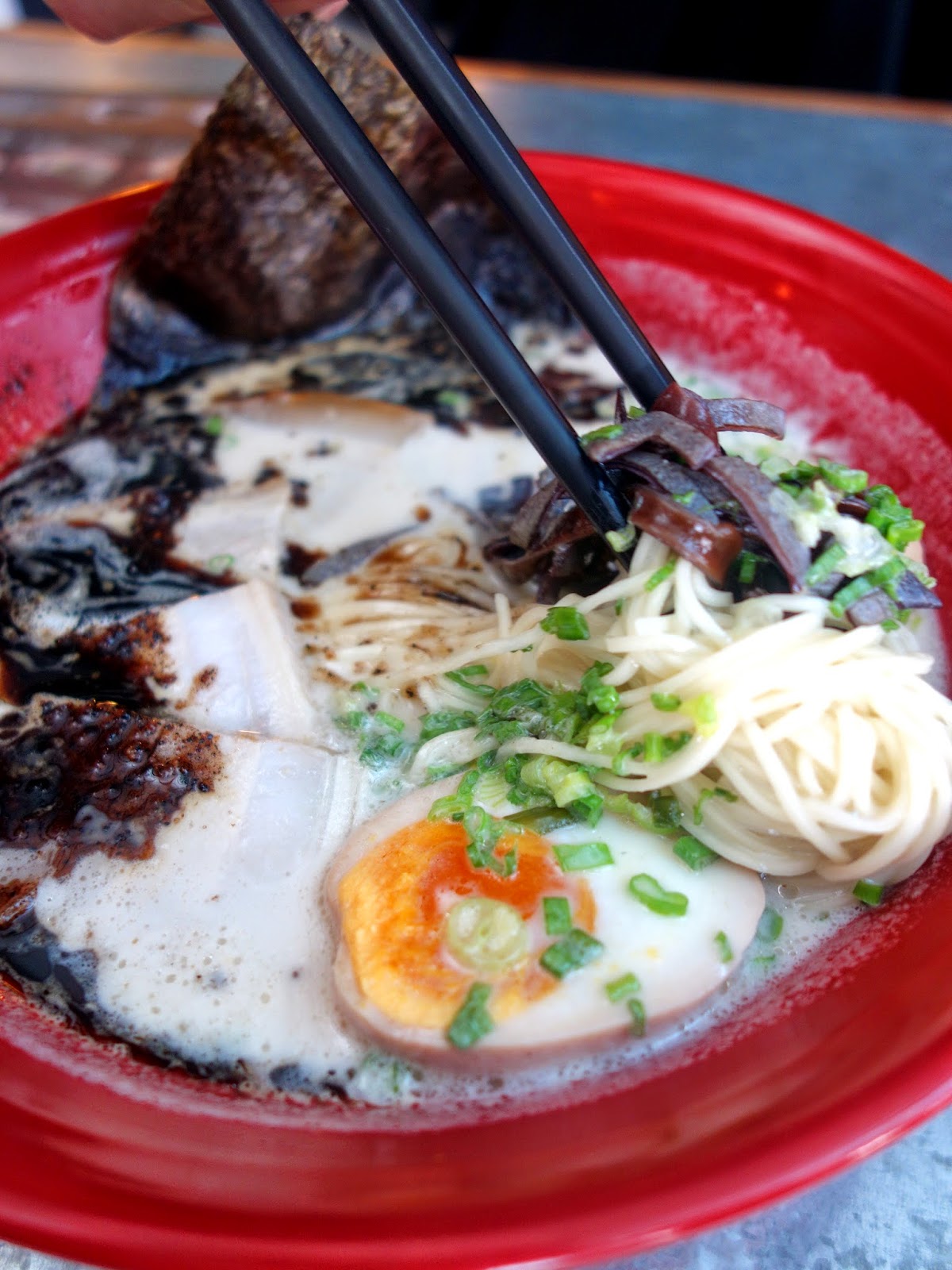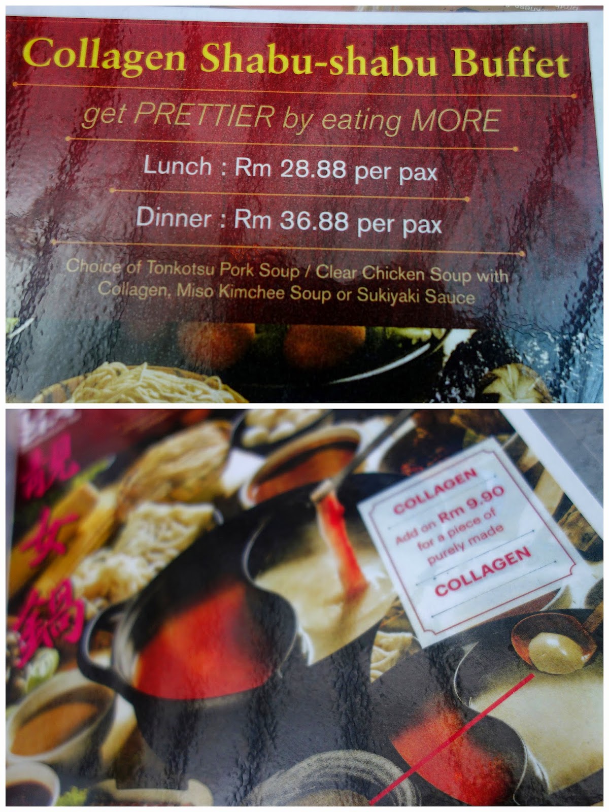 Collagen is extracted in-house (presumably from the pork bones) to help produce the broth. 'Get prettier by eating more?' Hmm.