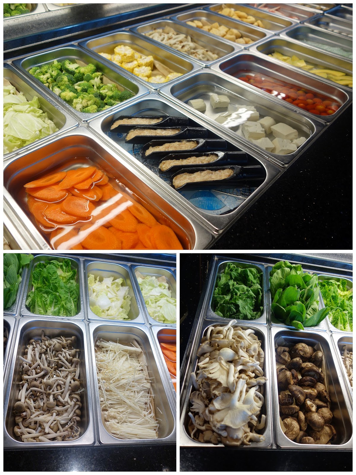 Meat balls, crab sticks, bean curd, mushrooms & veggies _ more than enough for a hearty feast.