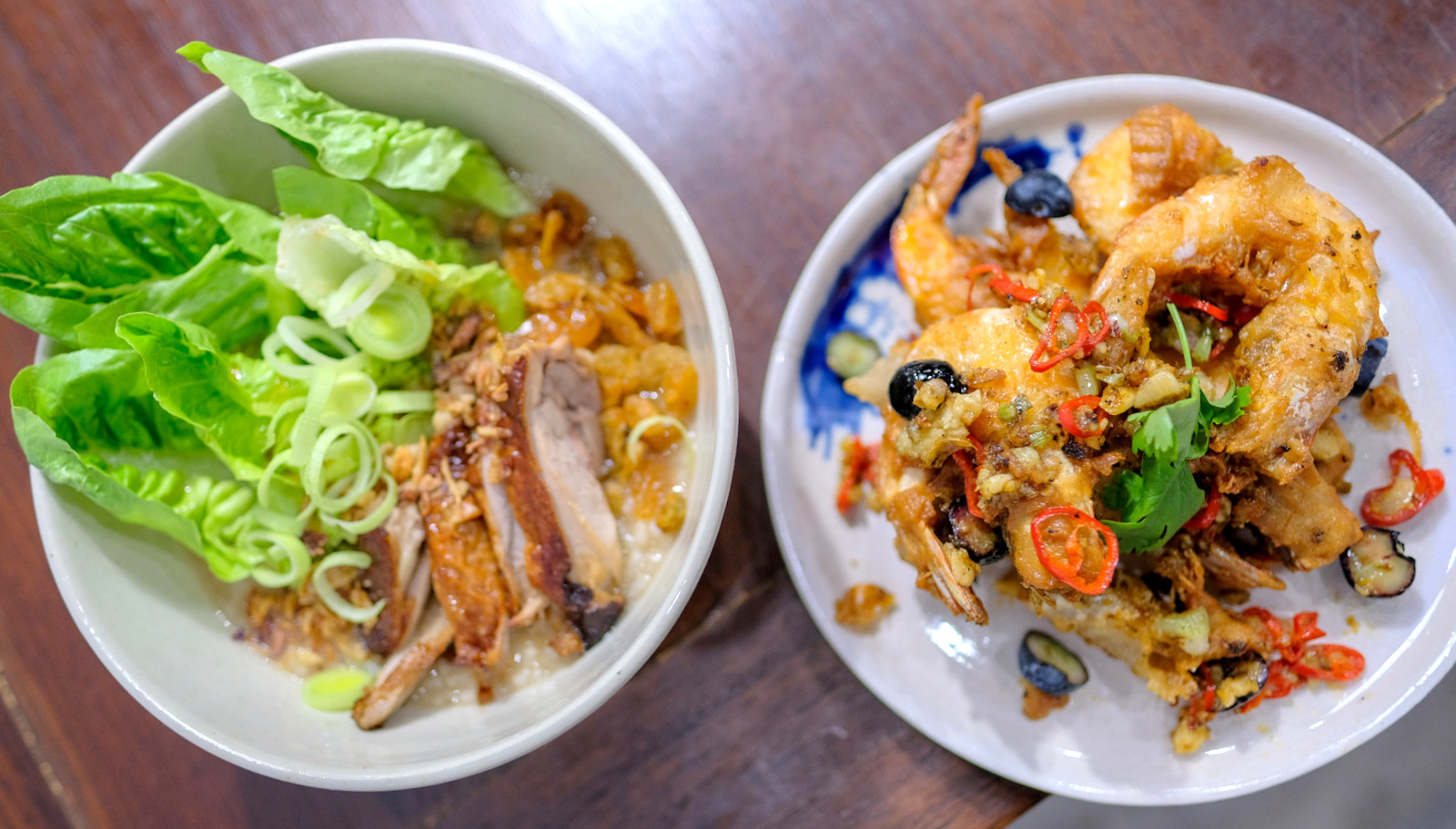 Grain's cooking is imbued with thoughtful twists throughout, with a Hainanese inspiration to the succulent kampung chicken leg, gracefully garnished with ginger, garlic and spring onions, rounded out with house-made chilli sauce and soy sauce (RM19.70), and Teochew inflections for the duck porridge, a soulful, savoury-sweet bowl of roasted meat with sultanas, fried shallots and romaine leaves, mingling harmoniously with firm, creamy jasmine rice congee (RM15.60).