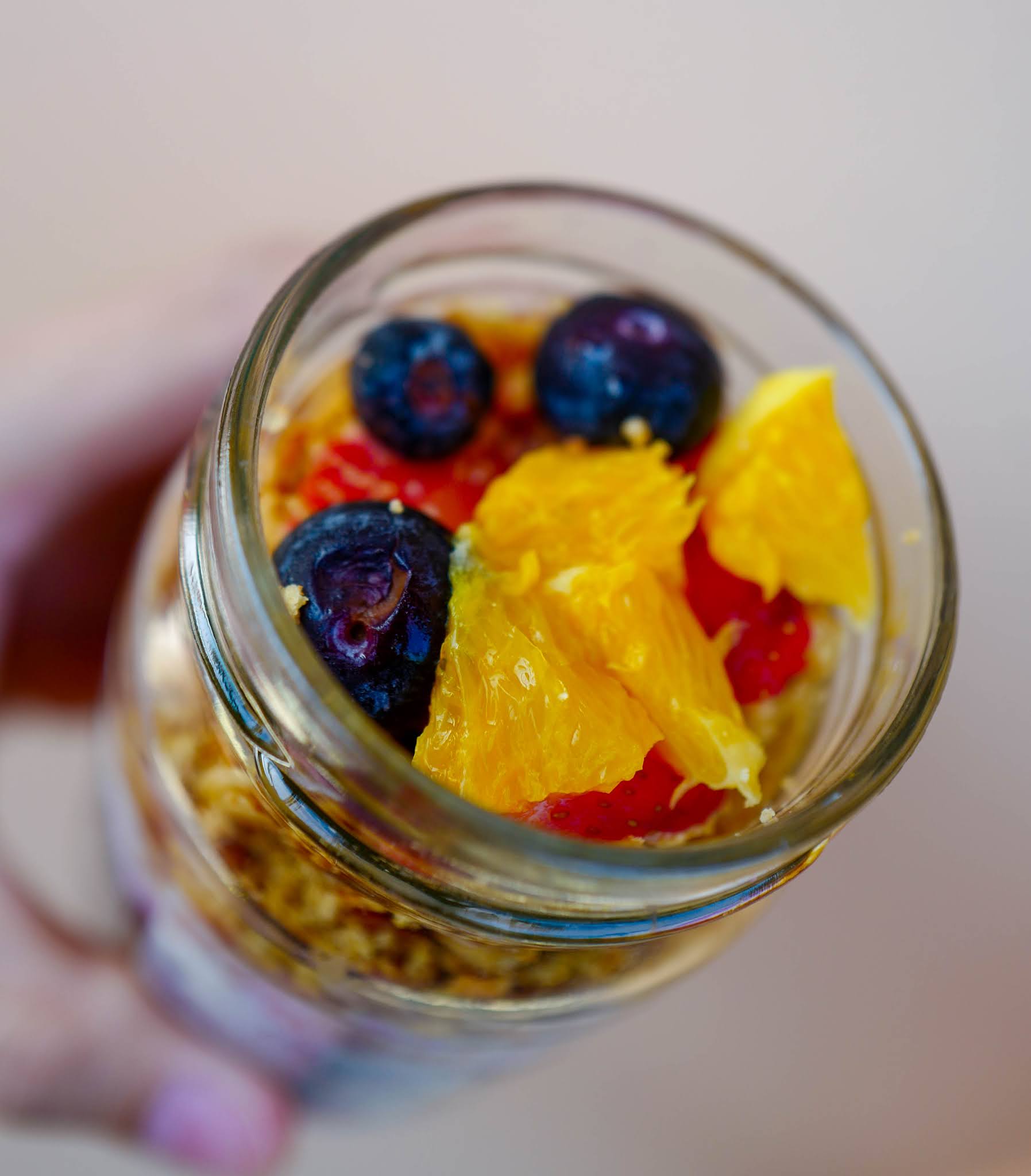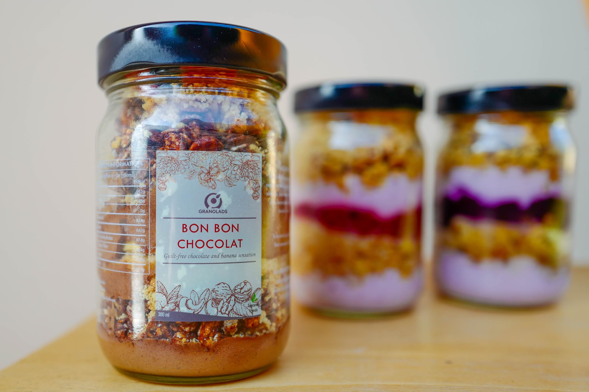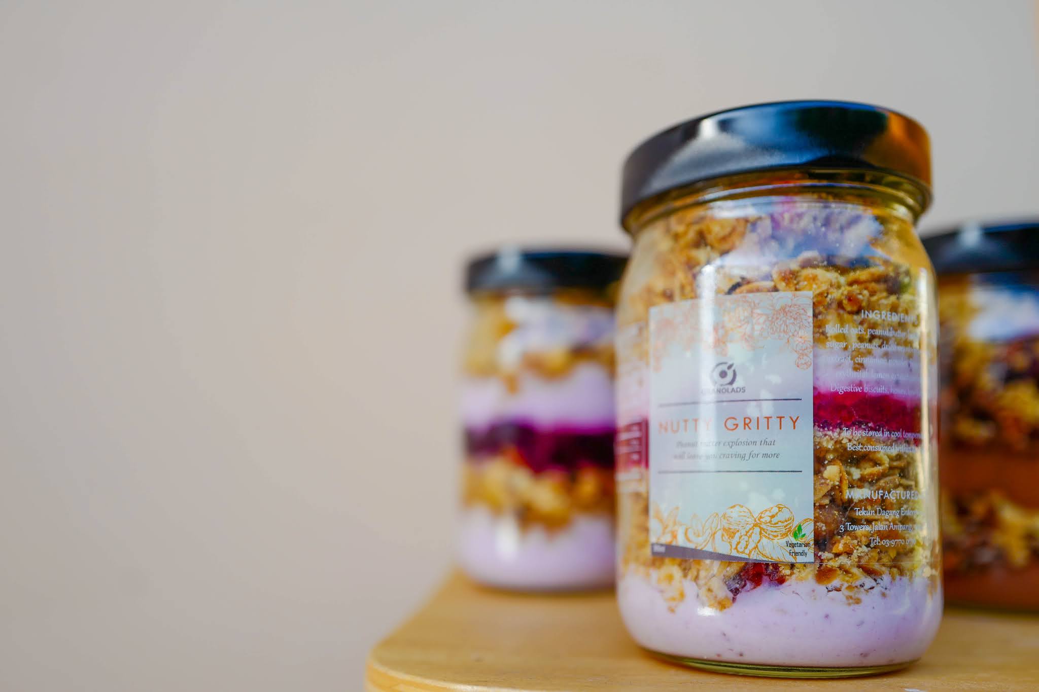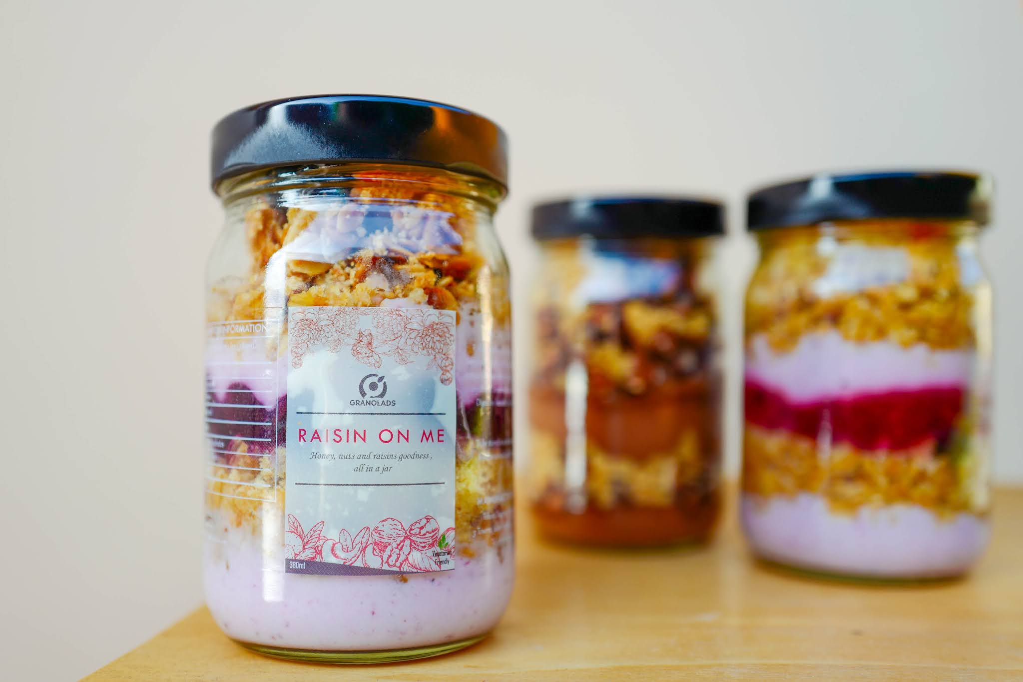 Ladies and gentlemen, meet Granolads, with treat jar deliveries to kickstart a health-conscious day, sealed with rolled oats, digestive biscuit crumbs and nuts, layered with yogurt and lots of sliced fruits including oranges, blueberries and strawberries.