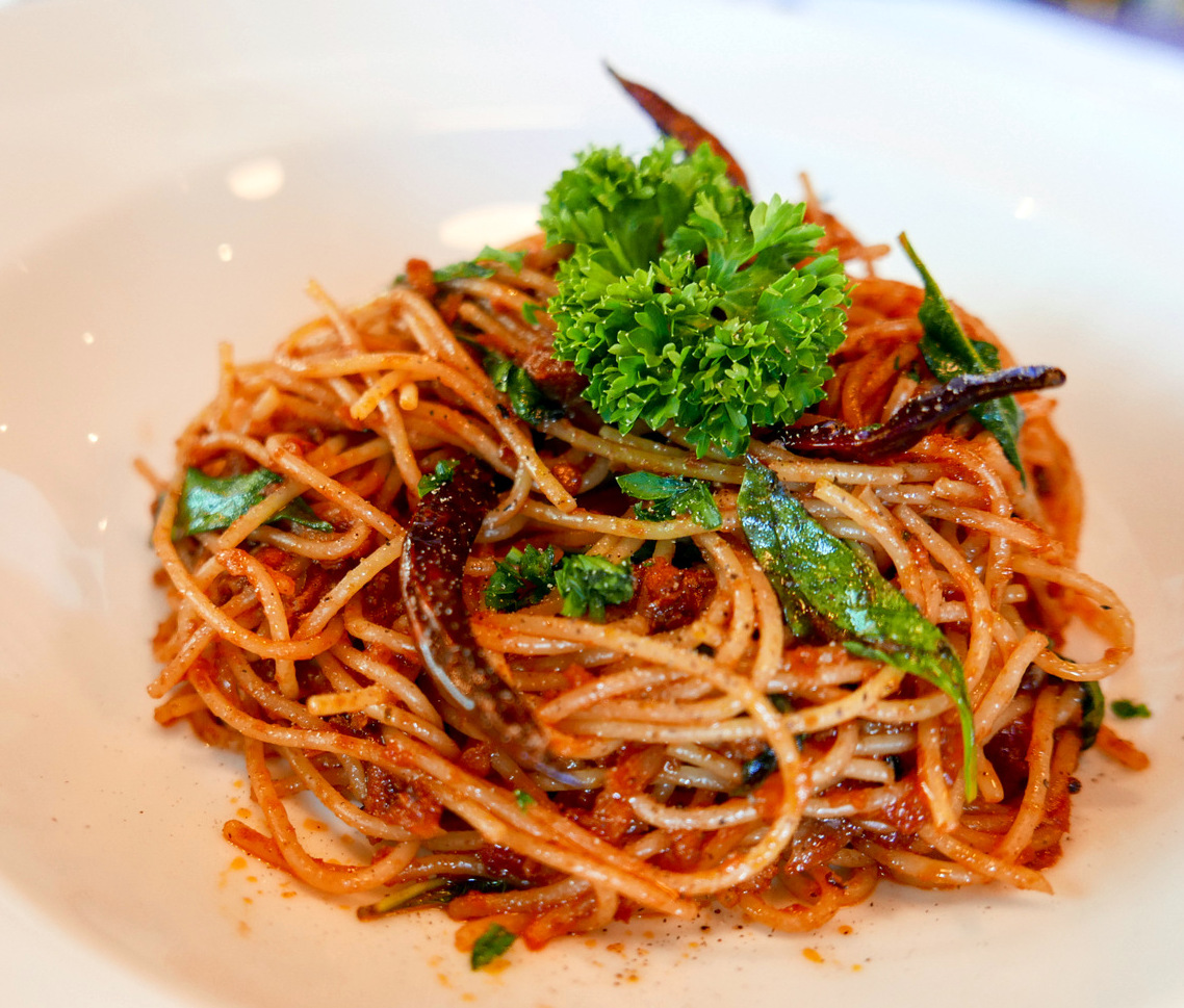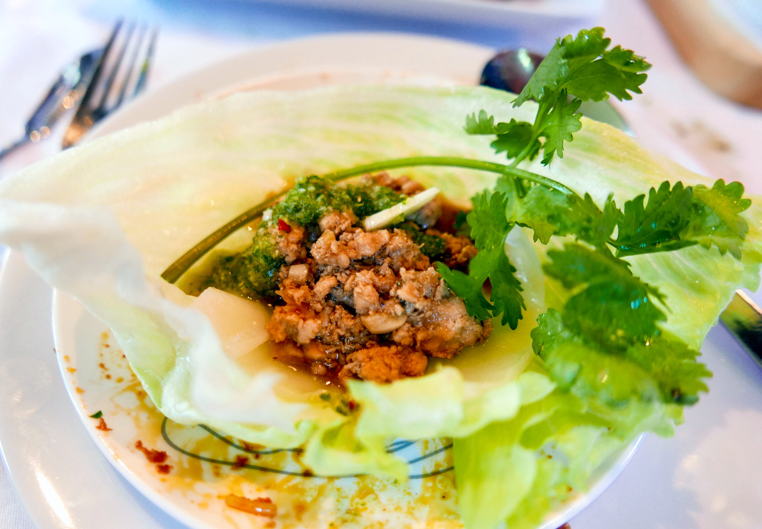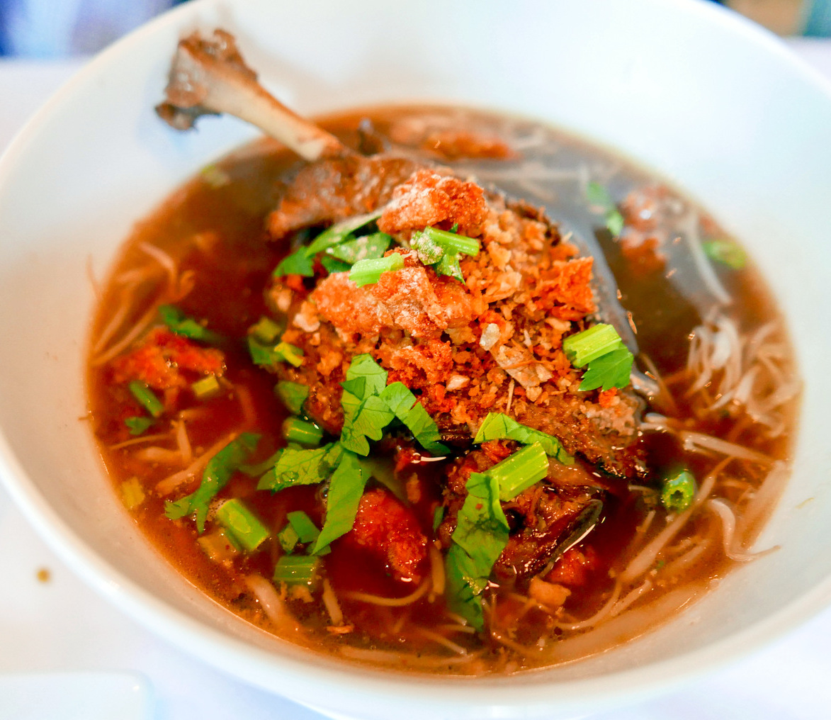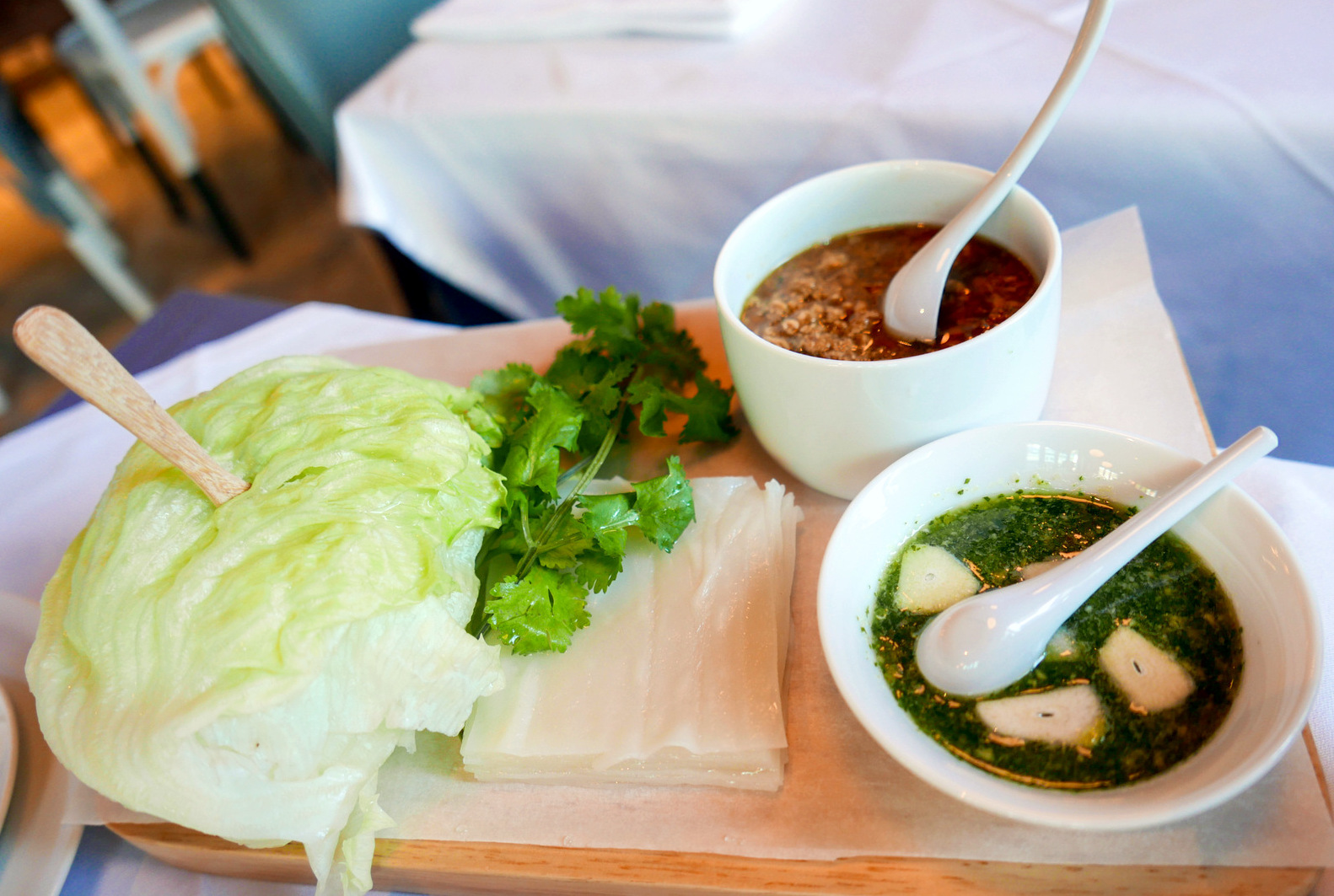 The menu abounds with hit-&-miss elements - the stir-fried spaghetti with Thai anchovies (RM24++) is pretty enjoyable, its intense brininess balanced with the heat of chilli oil & peppercorn. If you like rich & robust fare, the northern Thai khao soi (RM24++), featuring egg noodles & a chicken drumstick in a thick curry broth, partnered with crispy noodles & red onions, is an elaborate ensemble with full-bodied flavours that'll stick to your palate. But several other specialities seem hobbled by forcible flaws: The Weeping Tiger with spicy pesto (RM32++) is a visual triumph, but it's undone at first bite by excessively chewy slices of steak. The duck stew noodles (RM24++) also look glorious, but the whole leg meat - while tender & fleshy - borders on blandness, & the soup lacks genuine depth. The garlic fried rice is blanketed with plenty of crab meat (RM42++) as promised, but it's not particularly fragrant, & the crab is rather dry & one-dimensionally flat-tasting, neither succulent nor sweet.