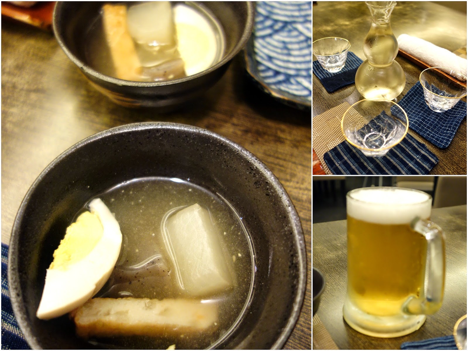 Oden is served as a complimentary appetiser; liquor can be ordered too, of course.