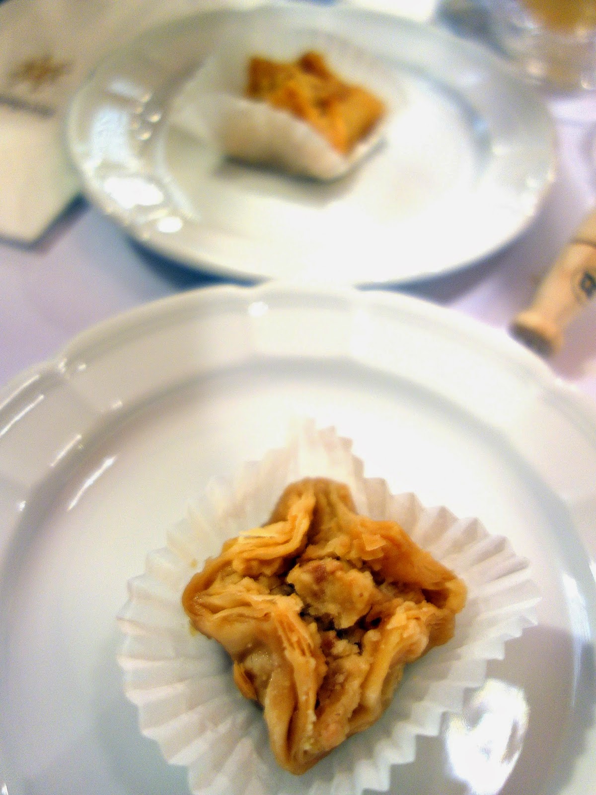 Another possible starter: Seafood pastilla, a doughy pie with bits of fish, shrimp, calamari, black mushrooms & rice vermicelli with lemon-based tomato sauce.