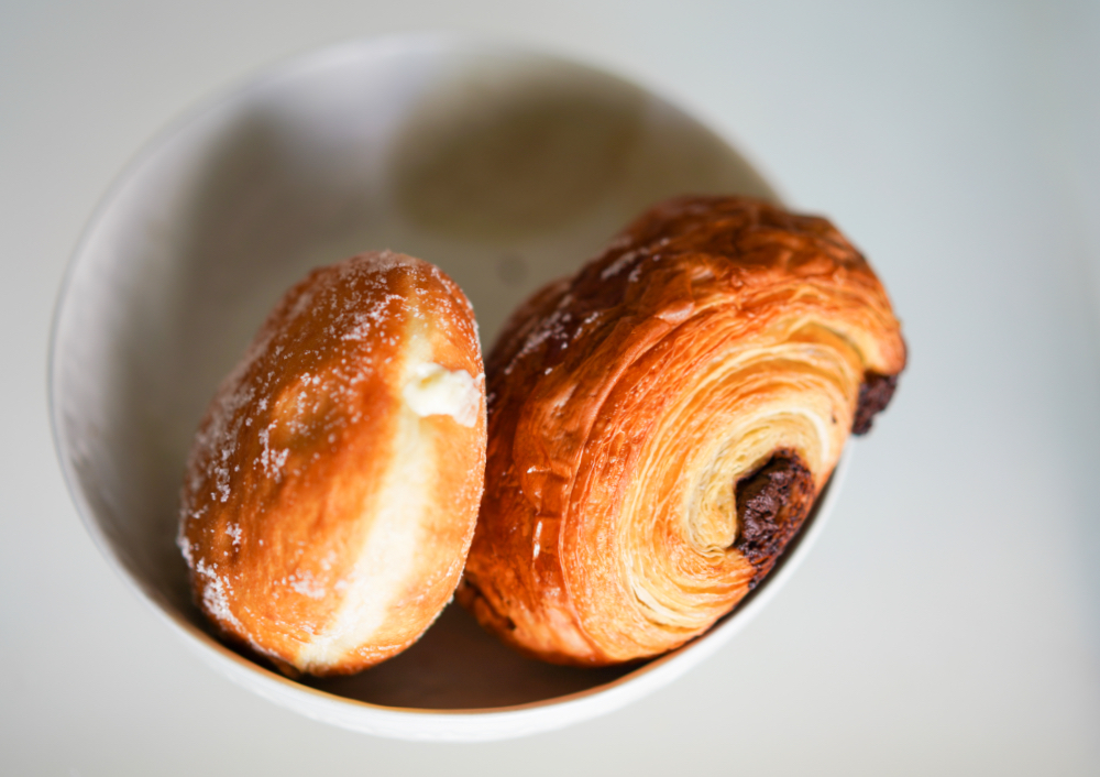 Pastries span vanilla custard creme bomboloni, sugary-doughy outside and lusciously stuffed within, channelling= childhood memories of cafeteria buns (RM7), and pain au sea salt chocolat, flaky-crisp and buttery, with that sensuously dark, decadent core of melted chocolate (RM10).