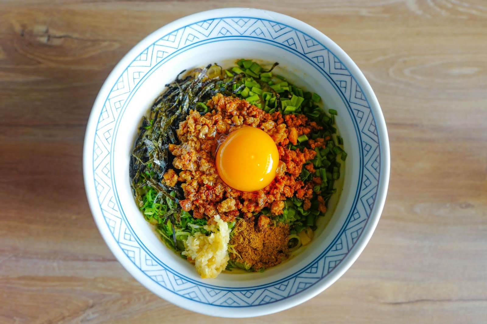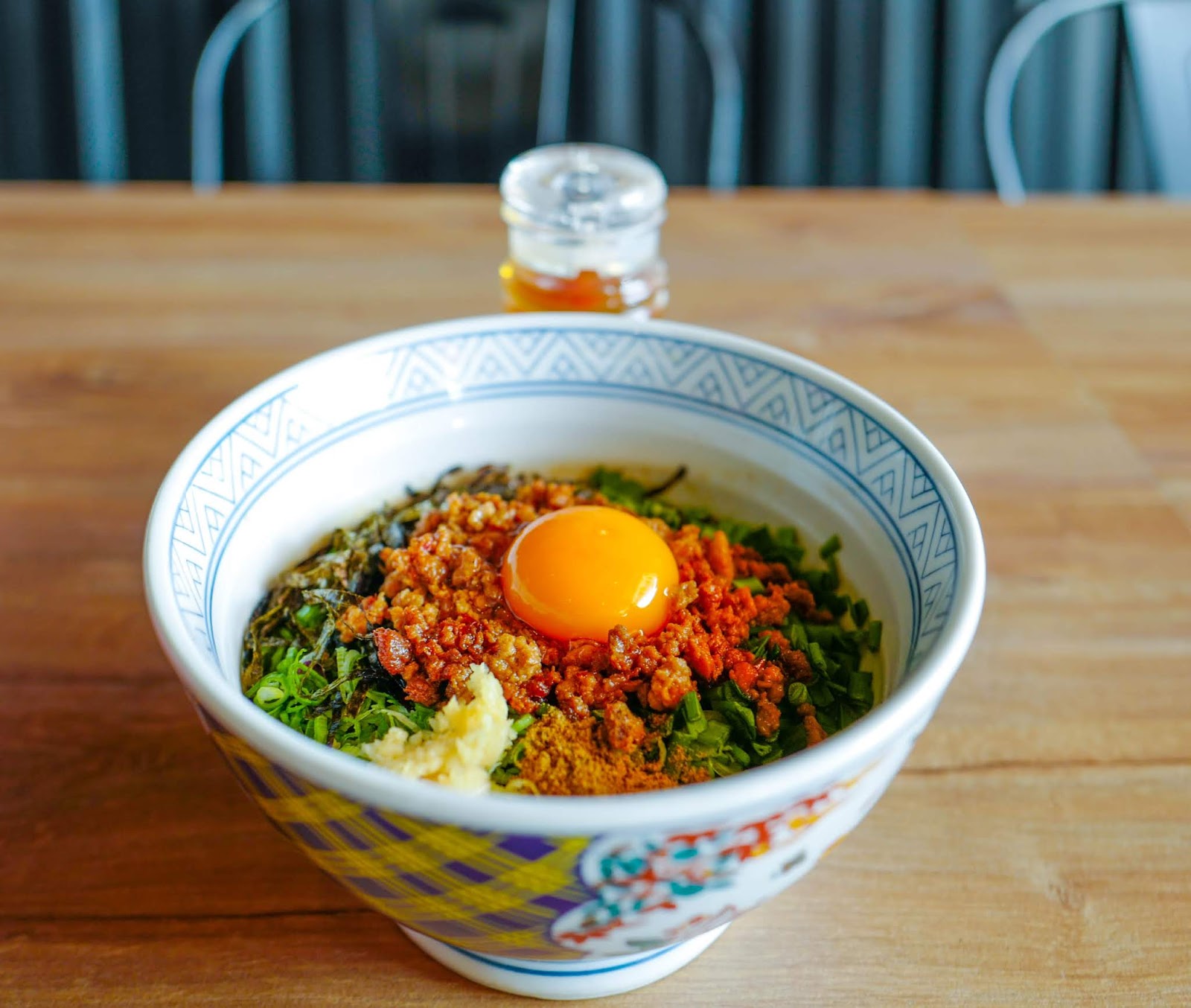 Maze udon is consumed by mixing everything up and relishing the savoury flavours and slick textures all together; after the first few luscious mouthfuls, you can add chilli-infused vinegar oil into the bowl to enjoy a different dynamic to this dish. A small portion of steamed rice is served alongside this, to be eaten with the minced meat and sauce remaining at the bottom of the bowl after all the noodles are finished.