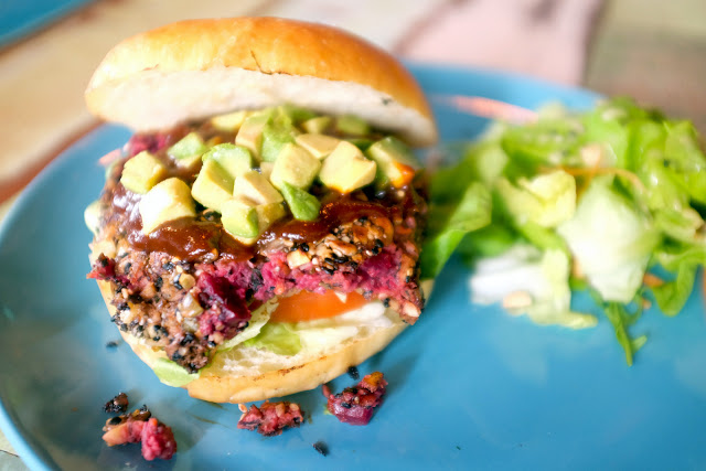 ... a vegetarian burger (RM16.90) with a ravishingly textured patty built with brown rice, black beans, sweet potatoes & walnuts, topped with avocadoes & sriracha sauce, in a bun that begs to be finished by true bread lovers, carbs be damned ...