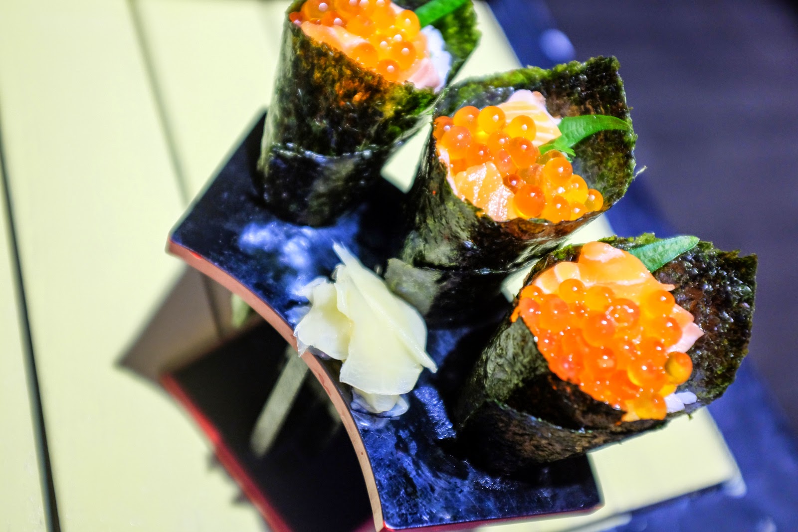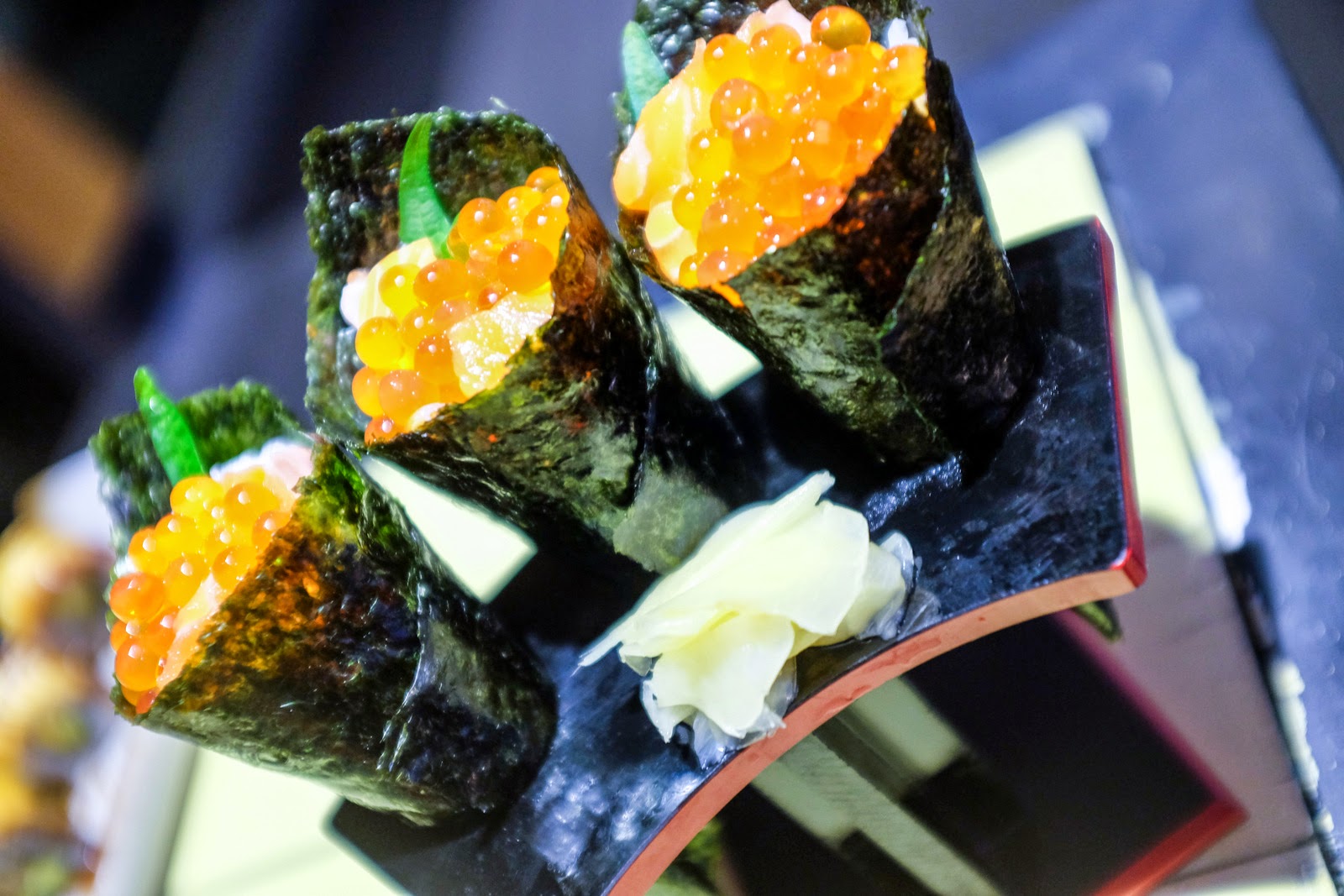 Our favourite: Hand rolls stuffed with thick slices of salmon sashimi & savoury salmon roe, for an explosion of vivid flavours & burst of pleasurable textures. We could happily eat these all evening.