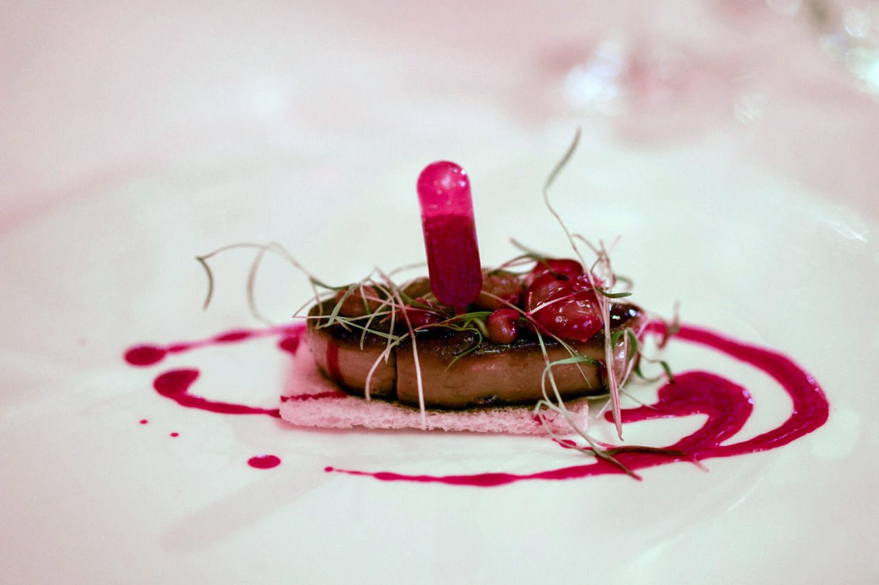 The menu strives to be a journey through different textures, vividly coming alive in one of the most magical places in the state of Perak. The string of starters concludes with liquid bliss, steaming in a creamy lobster bisque, fleshy with poached lobster, nutty with pistachio spheres and sweetened with corn kernels. Palate-cleansing sorbets lead us out into the main courses.