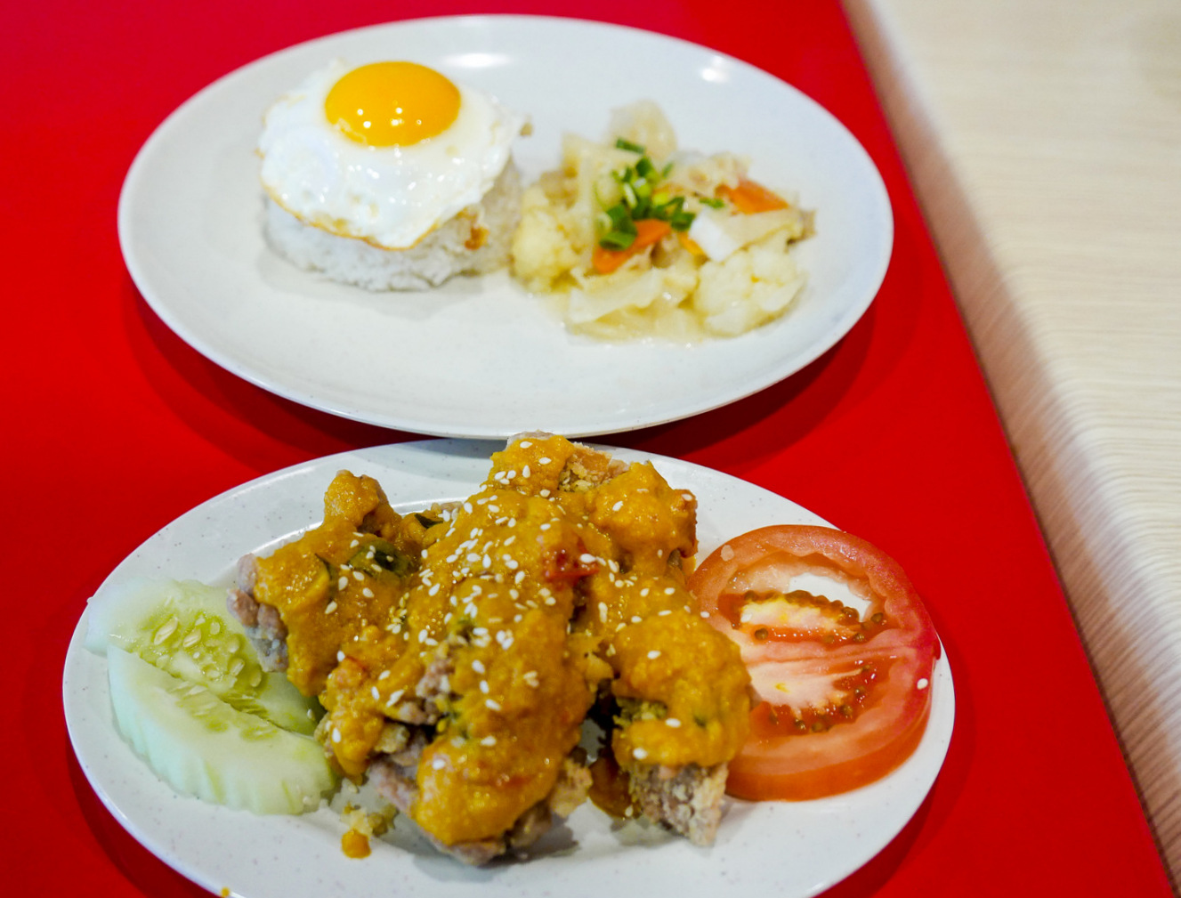 Single-plate noodles & rice meals are also an attraction: The restaurant's recommendations include hearty noodles with dry chicken curry, potatoes & bean sprouts (RM13.90), fragrant curry mee (RM12.90) & kampung fried rice (RM12.90), all of which come with a complimentary drink & fruits. The variety pretty much offers something for everyone; other options include fish ball noodles, wonton mee, seafood tofu soup noodles, hot plate yee mee, Penang-inspired fried kuey teow, braised rice & mee goreng mamak - it's no wonder some regulars eat here multiple times a week. Thanks to Jom Makan Place for having us here.