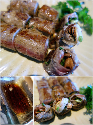 Rolled beef teppanyaki with garlic & spring onions (RM22++ for three pieces) would taste terrific even on its own _ but coupled with a special sauce of tosa shoyu, mushroom broth, black truffles & olive oil, its a masterclass in meat.