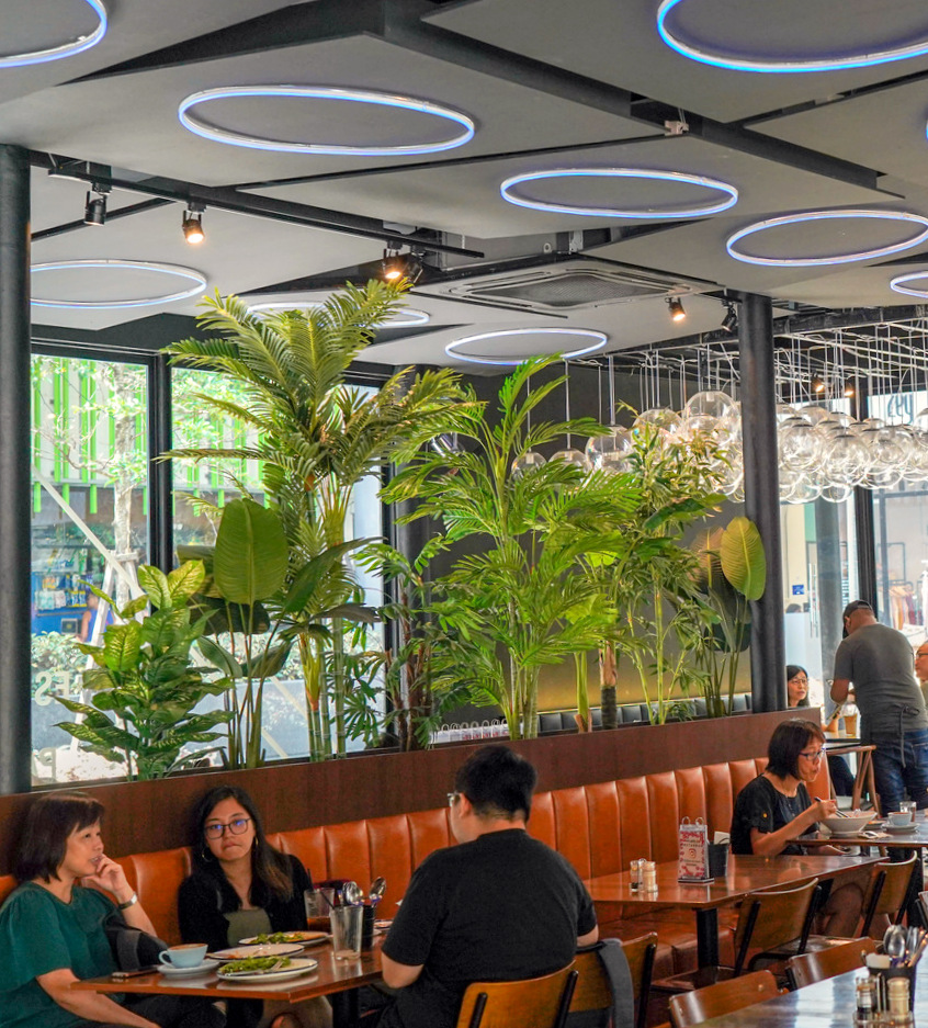 The rest of the menu is extensive, equally emphasising East and West, hopscotching from shakshouka, salmon omelettes and smoothie bowls to Korean spicy chicken, Malaysian satay and Southeast Asian noodle bowls, with some imaginatively playful pleasures like a quinoa sweet potato patty burger in the mix.