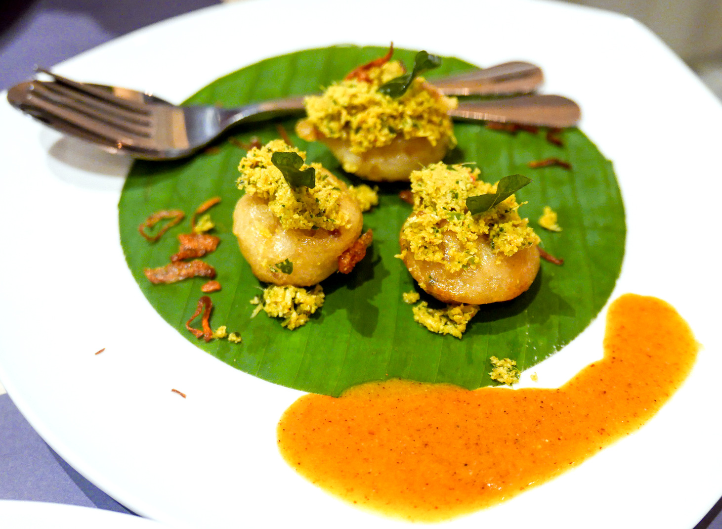 Lunches are currently limited to thali-style rice platter meals, so it's wiser to visit in the evening, when a complete a la carte menu is unveiled, with an encyclopaedic spectrum of intriguing offerings. We enjoyed the Koddapan (RM12), banana flower & runner beans cooked with grated coconut, curry leaves & mustard seeds, with its gentle dimensions of flavour. The Appo (RM12), mini rice cakes topped with spice powder & coconut chutney, makes for a fun snack, while the Kurumulagu Konju (RM18) features commandingly fresh marinated tiger prawns, deliciously steamed in a banana leaf pouch & garnished with beetroot emulsion. Each dish spotlights an ensemble of well-prepared ingredients that showcase diverse shades & subtleties.