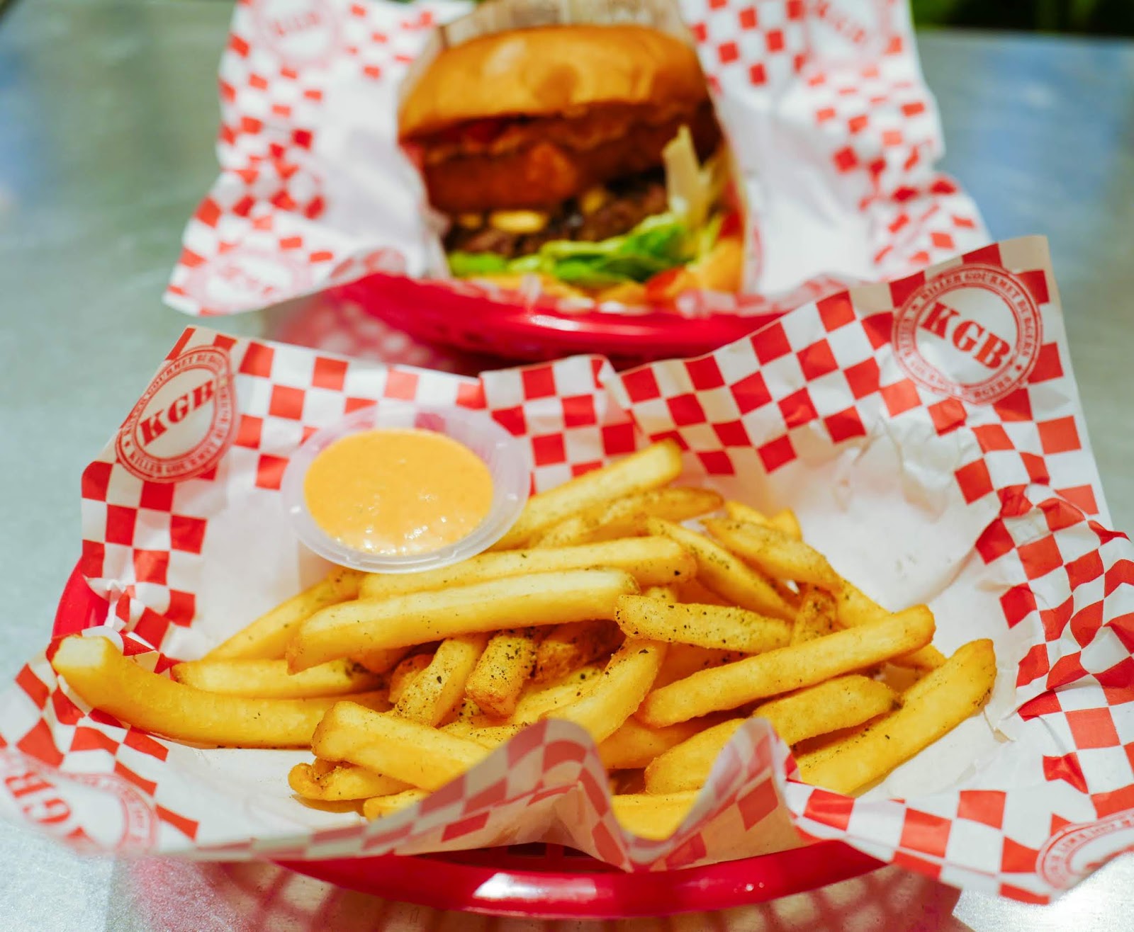More than 20 varieties of burgers remain available, with patties that span American diner-style crust-seared beef to chicken fried with a parmesan crust, plus vegetarian possibilities that include black bean and pistachio or portobello mushroom. Prices are precisely the same across all of KGB's locations.