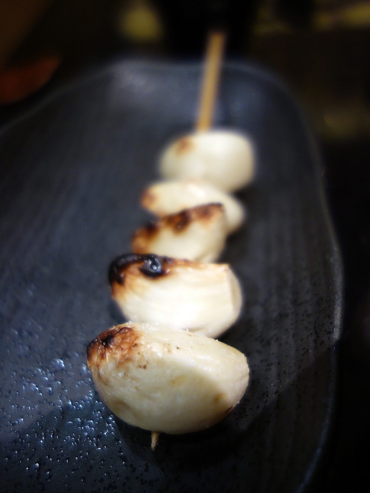 Skewered grilled garlic (RM3.50). Kinmes a no-pork restaurant; the hogs not needed here.