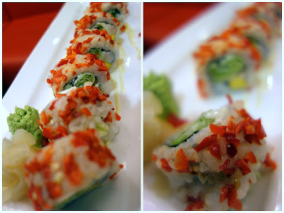 Kirakus house special maki (RM25++) is interesting: thats bright-red chili coating each slice, stuffed with prawns plus green apples & mango to subdue the spiciness.