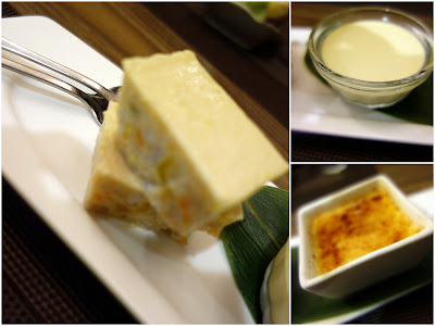 Complimentary dessert: sweet potato & yam cakes, wasabi pudding & coconut creme brulee.