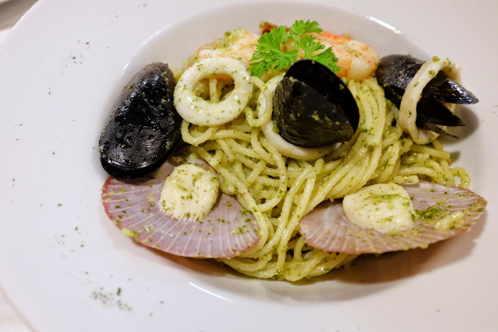 Plenty of pasta; our pick's this one with scallops on the half shell, blue mussels, calamari & prawns sauteed in almond pesto sauce. The pasta could be a bit firmer, but this is still fair value for RM24.80, surprisingly substantial enough for a filling dinner.