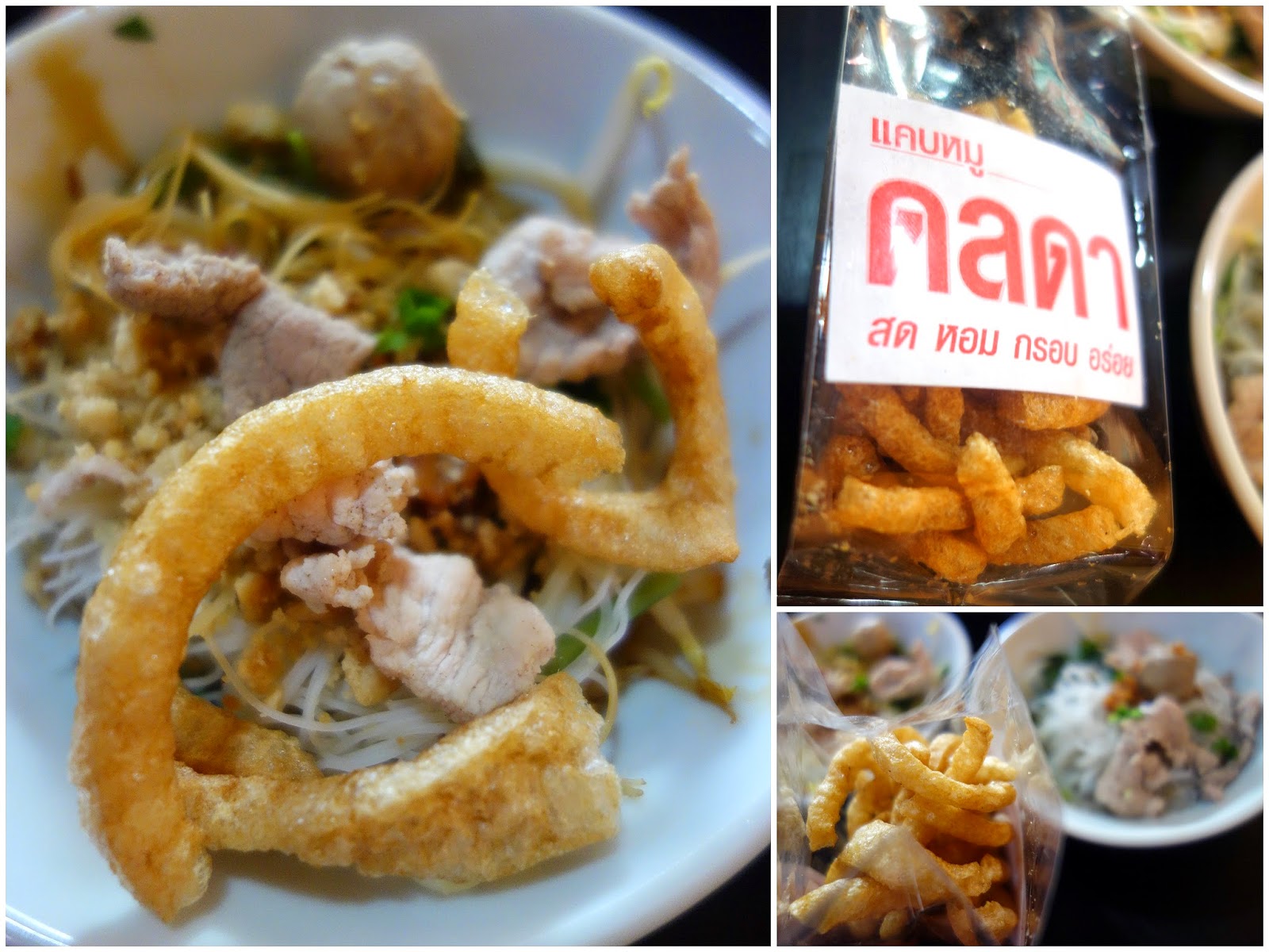 Buy a whole bag of Thai-produced crispy pork rind to lend lots of crunch to the noodles, turning the meal into a guilty pleasure.