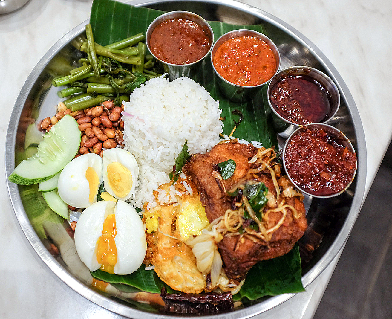 Try to sample each of the sambals (RM1 per serving); every one is distinct & delightfully delicious, with well-balanced flavours & rich textures - the spicy tebaboh, savoury la forfo, non-spicy adek & vegetarian mambang with a coconut base. The sauces play a strong role in elevating the nasi lemak, which in its most basic form is served here with kangkung & timun for RM2.50. Other robust sides include sambal sotong (RM5.50), kari kapitan ayam (RM4.50) & - cockle alert! - sambal kerang (RM6.50).