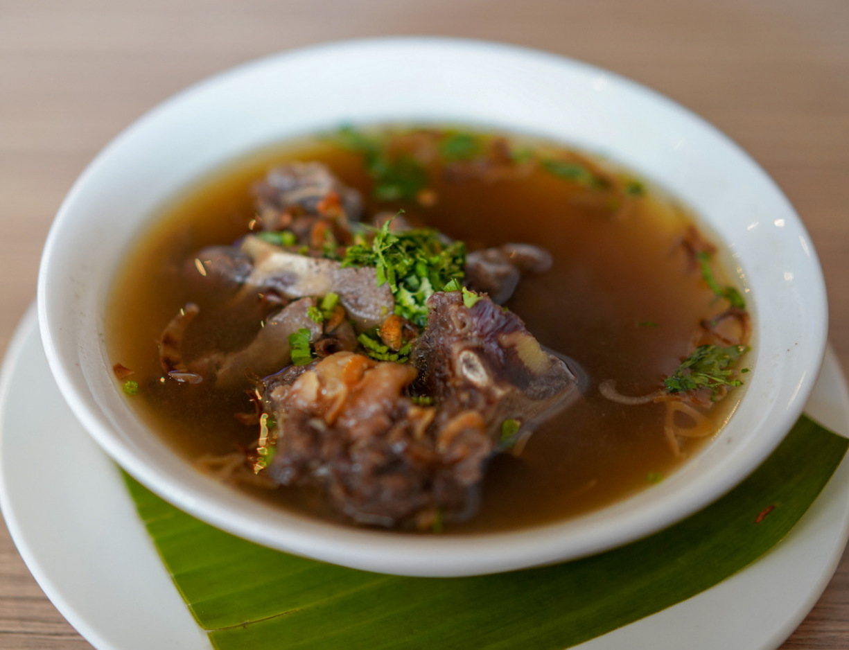 If you're here with a few friends, order a bunch of small plates to share, such as the bone marrow soup (RM18.90), as well as vegetables like fermented wild bitter mustard leaves (caution: this is very salty, so let the kitchen know if you'd prefer it less so) and lovely cassava leaves (Sarawakian midin is also seasonally available). Wash down with Borneo-roasted coffee and house-made soy milk sweetened with gula apong palm sugar. Look for the hornbill at the restaurant's entrance and come right in.