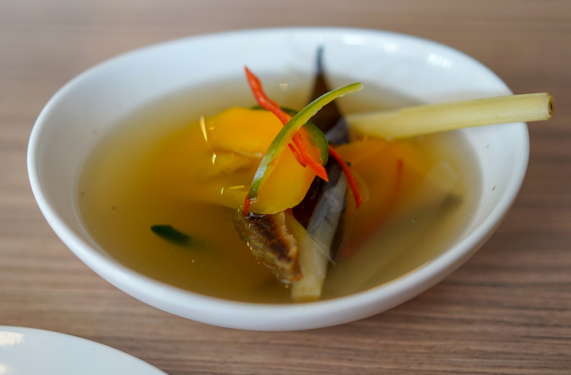 Now we come to the fun stuff, the acquired-taste offerings that might not be everyone's cup of tea. When we visited, jellyfish umai (RM22.90; a cured recipe that could range from fish to prawns) was available, and it was interesting, with a sweetness and less chewy texture than might be expected from jellyfish. That was a special of the week, but fleshy fish-based umai (RM22.90) is available all the time, as are other fish creations like a powerfully pungent fermented sultan fish salad (RM14.90) and savoury smoked tahai fish soup with sour brinjal in a clear, mild soup (RM20.90).