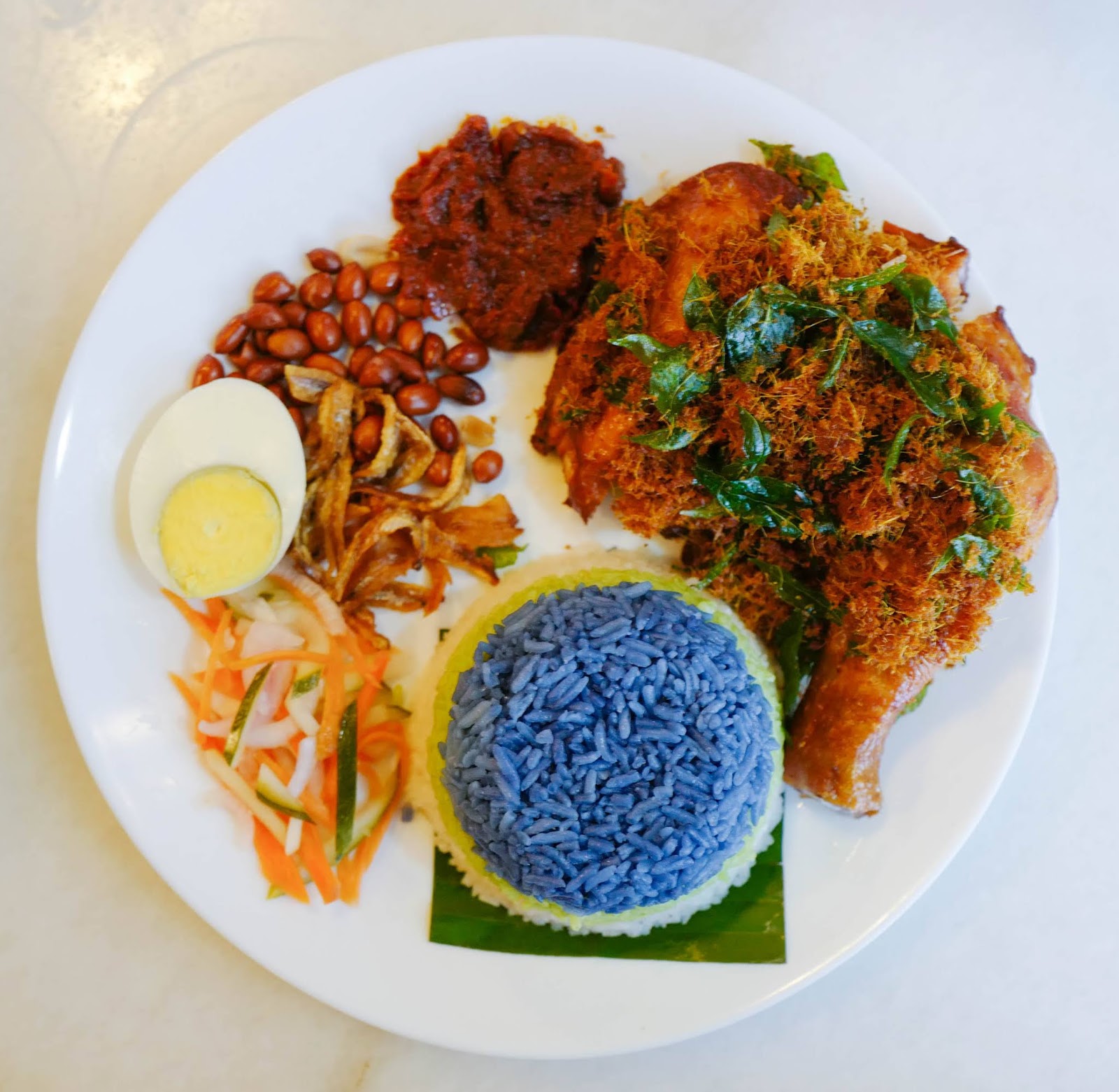 If you're looking for a unique creation, try Nyonya Cendol's Nasi Lemak 3 Rasa Ayam Goreng Berempah, a family recipe from Minangkabau brought in by one of the restaurant's staff members. Elegantly eye-catching, the rice is lovingly layered in three varieties - the top is dyed with butterfly pea flower, the middle is laced with pandan juice, and the base is regular nasi lemak - making for a more nuanced interpretation of nasi lemak than the norm (RM17.30).