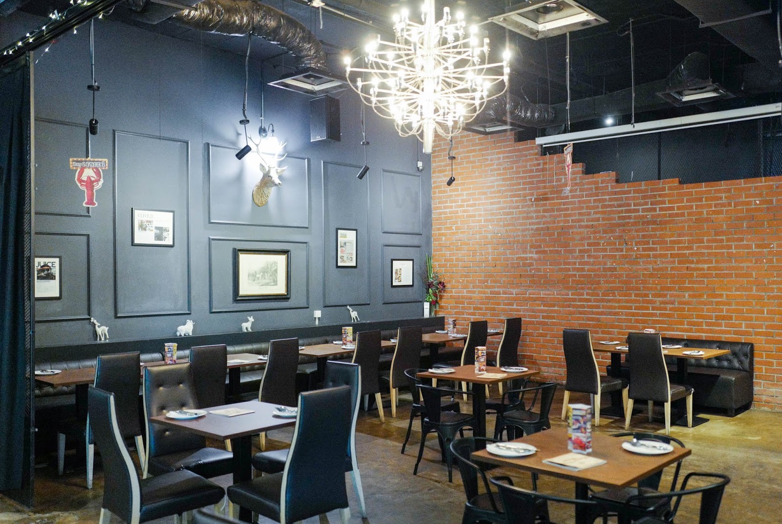 For celebratory dining and drinks, BLACK Market offers a spacious setting with both indoor and alfresco areas, accommodating up to 100 persons. Smaller engagements of about 20 persons can partition off a section of the restaurant for themselves, overlooked by an antlered wall mount.