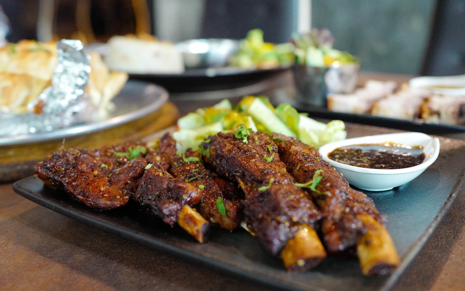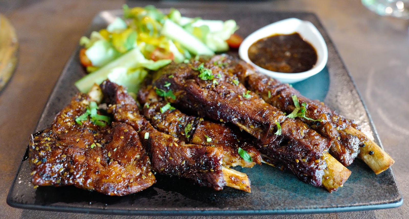 BBQ pork ribs and red wine prove a natural match, of course - the signature BLACK Market Big 'S' Pork Ribs, oven-baked with a potently savoury marinade (RM58), stand up respectably to the the Warburn Estate Rumours Merlot, a smoothly delicate vintage with hints of plum and berries.
