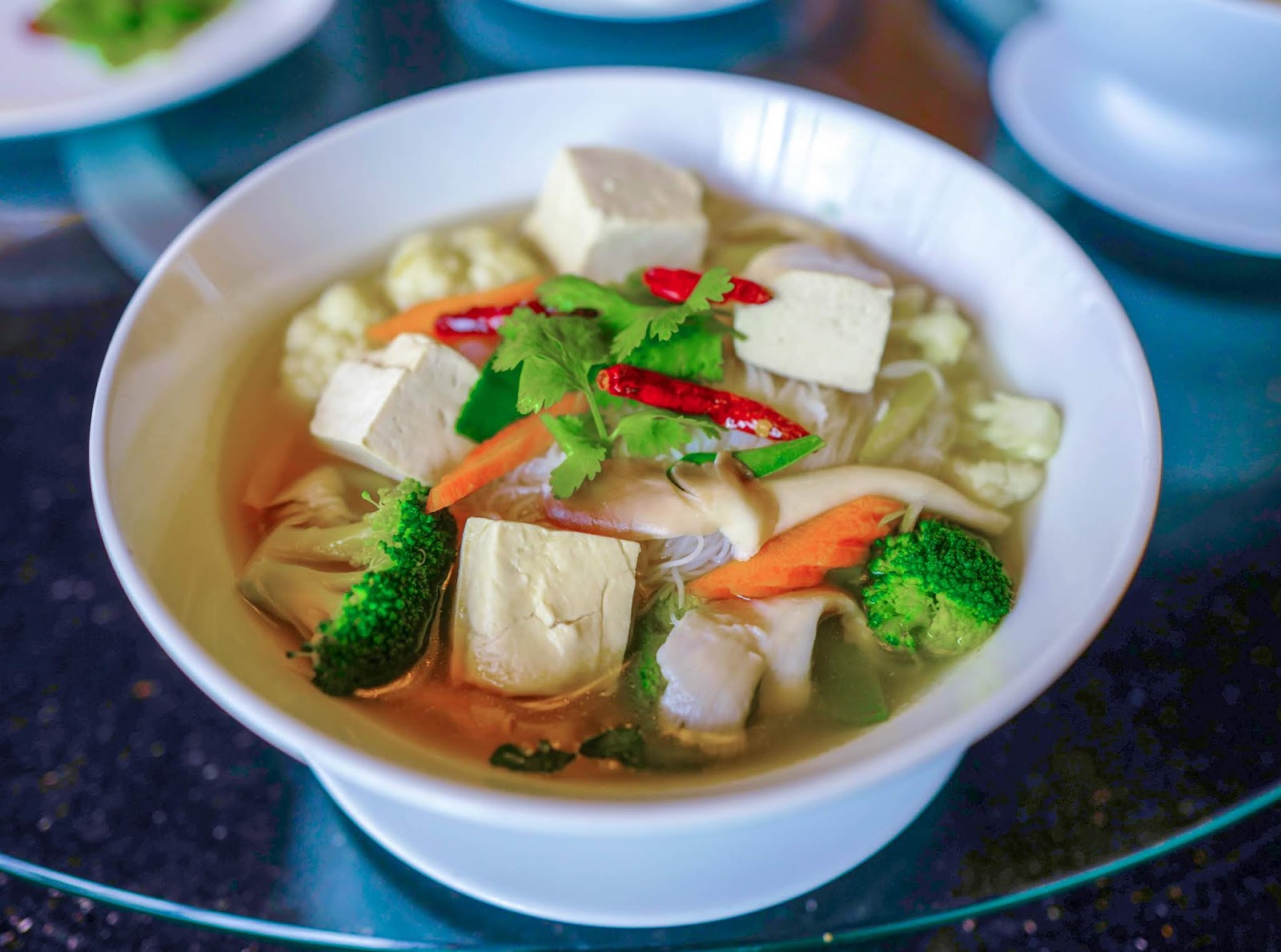 Loyal fans of Absolute Thai know and love the restaurant's clear tom yam soup, a nod to the original, most time-honoured Thai preparation, with a beautifully balanced, sweet-tangy-spicy broth that shines through even in the vegetarian rendition, robust with the fragrance of culantro, or pak chi farang, brimming with noodles for a nutritionally filling lunch or dinner, with hearty chunks of tofu for a protein punch.