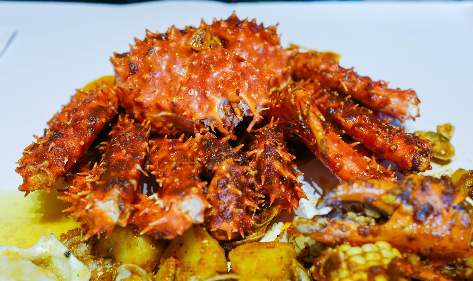 The Shell Bang is another buoyantly balanced sauce, blending Lemon Pepper and Butter Garlic to enhance premium temptations like the Alaskan King Crab Legs and the Crab XXXL - crabs at their fleshiest, firmest and finest, more substantial than regular crabs, spectacular if you want to sink your teeth into prime seafood succulence.