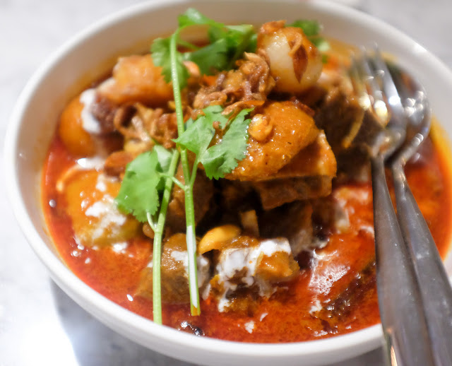 For meat: Indonesian 'dendeng balado' caramelised beef short ribs with kaffir lime (RM55) & Thai lamb shoulder massaman curry with pumpkin (RM40), both built with tender, flavoursome flesh. The melting-pot menu goes on, with Peranakan ayam buah keluak, soft-shell crab rojak, lamb murtabak, five-spice chicken lorbak & much more. But there's a notable omission: This is KLCC, so Mama San skips some signature recipes from Bali & Hong Kong, including crispy pork ribs & pork hock confit.