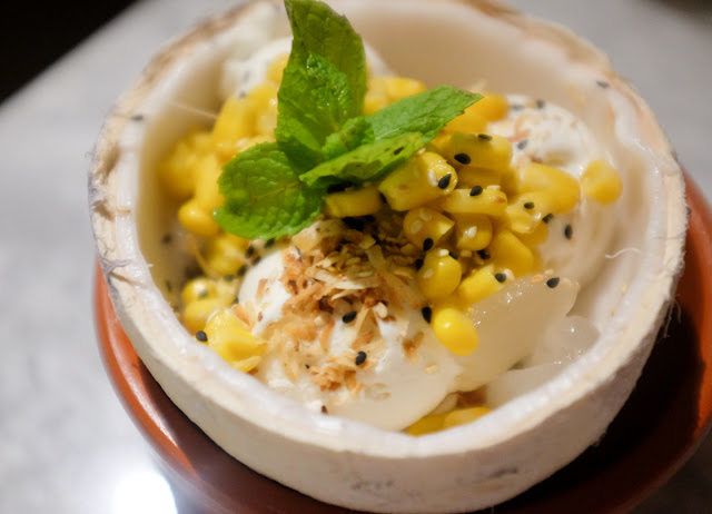 The catalogue of desserts looks impressive from top to toe, but the stars may be the steamed buns stuffed with Nutella (Mama San's take on tau sar bao) & served with an affogato of vanilla ice cream & Balinese Kintamani espresso (RM18) & condensed milk ice cream with shredded young coconut, toasted coconut, crushed peanuts, sweet corn & sesame seeds (RM18).
