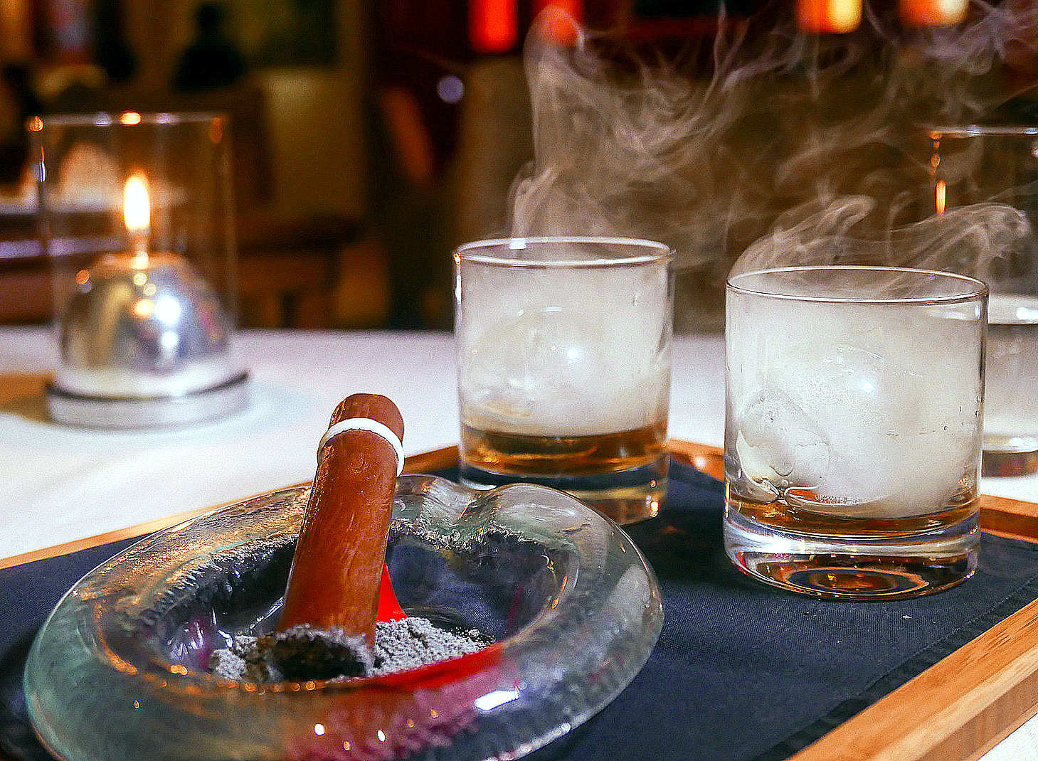Be sure to save space for desserts, which illustrate a dramatic, sensuous flair with fire & smoke - Mandarin Grill's rendition of the Baked Alaska is one of KL's finest, with smooth yoghurt ice cream blanketed in soft Italian meringue, set alight with whiskey (RM42). But for an especially unique creation twinned with top-drawer liquor, the smoked dark chocolate cigar with single-malt whiskey on the rocks makes us swoon, swirling with intoxicating aromas that foreshadow pure, melt-in-the-mouth bliss (RM78). And if all that still isn't enough, chocolate petit fours will send you soaring into the night on a giddy, genuine high.