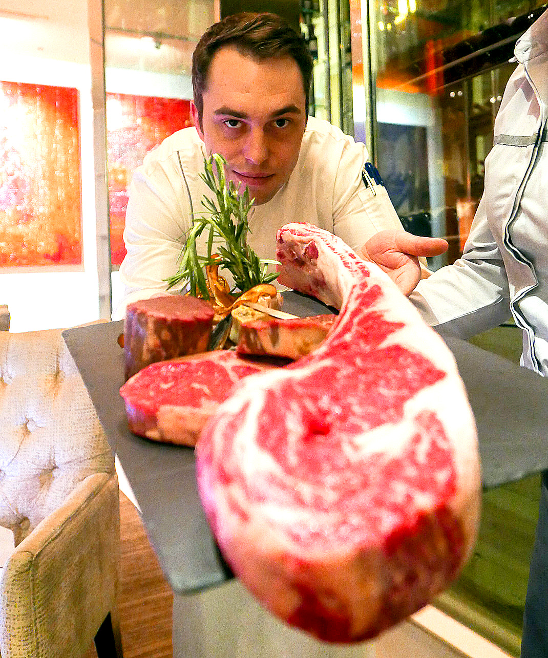 Beef is where the thrills & action are at - key temptations include cuts of Sher Wagyu produced by the award-winning Sher family in Victoria, Australia, prepared on Mandarin Grill's Josper charcoal grill; choose a 400-day grain-fed tenderloin, rib-eye or sirloin (BMS 8) or - if you're sharing among two to four heavy eaters - the colossal Tomahawk bone-in rib steak (BMS 6-7).