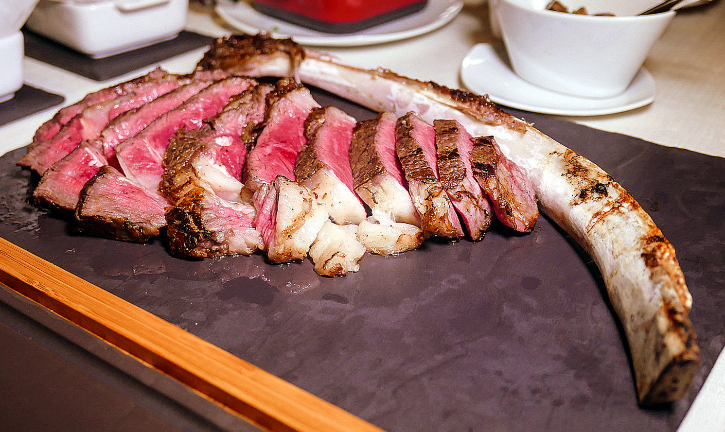 A 1.5-kilogramme Tomahawk (cooked medium-rare & French-trimmed) is a sight to behold - lust-worthy meat, convincingly rich with bold flavours to relish, featuring full-bodied protein & gelatinous-sweet fat, yielding a muscularly pleasurable chew.
