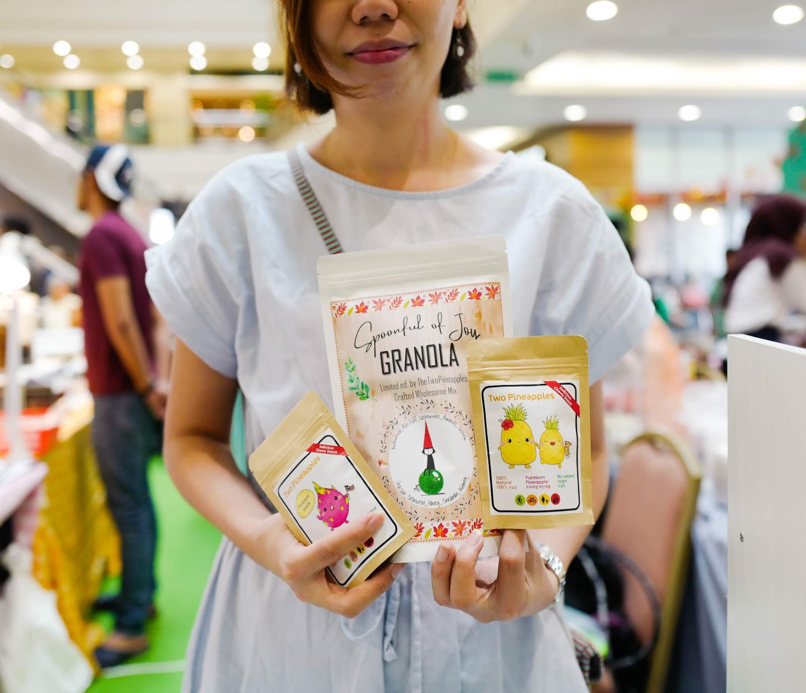 Estelle from Two Pineapples was pleased that customers were not only curious about her products, but about her personally. "They're willing to try and chat with you. It's a very happy atmosphere at Maple Food Market, catching up with your customers and asking how they are." The cute Two Pineapples logo is based on Estelle and her sister; she's the big pineapple.