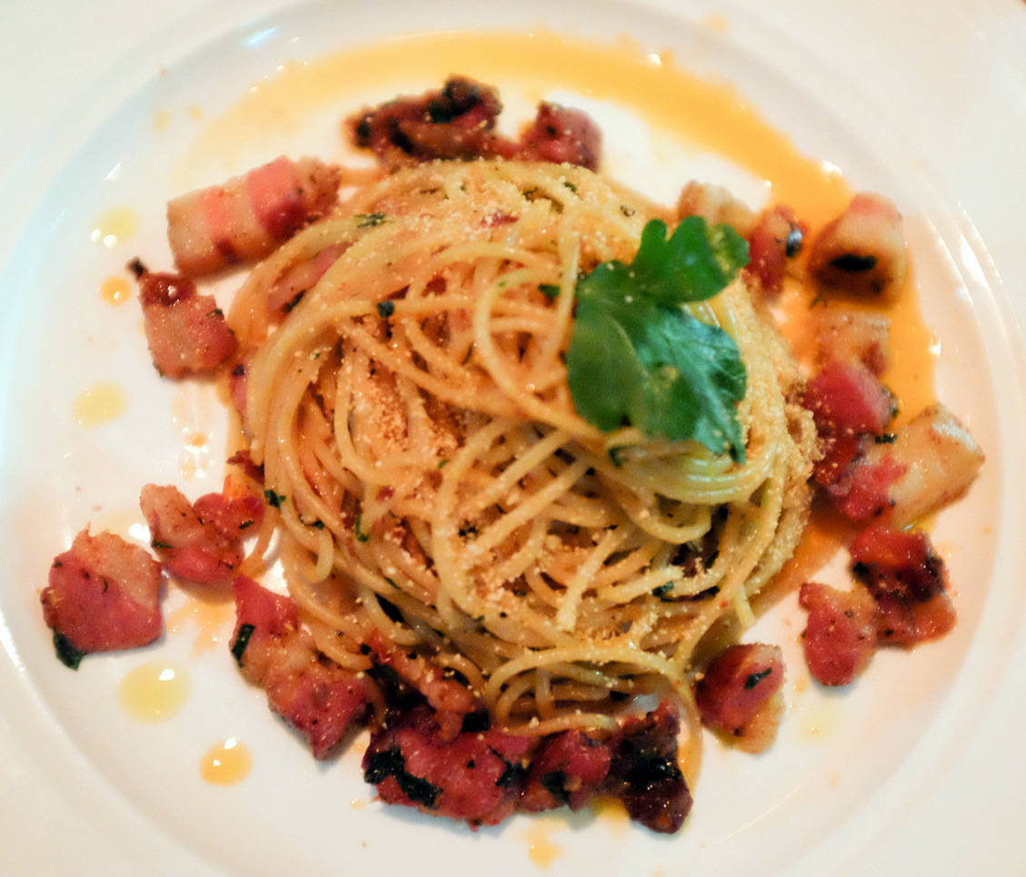 Spitalfield's does a solid job with gastropub-style, hog-focused fare - a meal of six-hour slow-roasted pork roulade (RM36.90), pasta with pulverised pork skin & crispy lard (RM27.90) & sizzling chocolate brownie with ice cream & pork bacon (RM22.90) ensures that no artery goes unclogged.