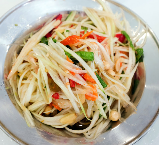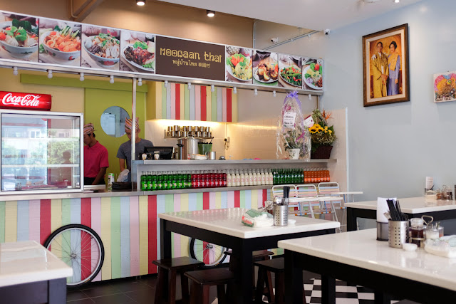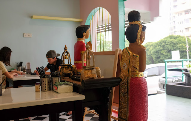 Our favourite street for food in Taman Desa welcomes the neighbourhood's newest Thai restaurant - Moobaan Thai offers a promising mix of crowd-pleasing classics, with a kitchen helmed by a chef from Chiang Rai. We tried the som tam (RM8; pungent & pretty fiery), the tom yam clear soup kuey teow (RM8; soul food for a stormy evening) & the stewed pork leg (RM15; tender & sweetly fleshy) - satisfactory enough for us to contemplate returning for the northern Thai-style fried chicken (RM12), kuey chap (RM8) & pad thai (RM10) - prices won't hurt the wallet here. The setting is pleasantly cheerful & colourful, showcasing pieces that Moobaan Thai's Malaysian founders purchased from Bangkok's Chatuchak weekend market.