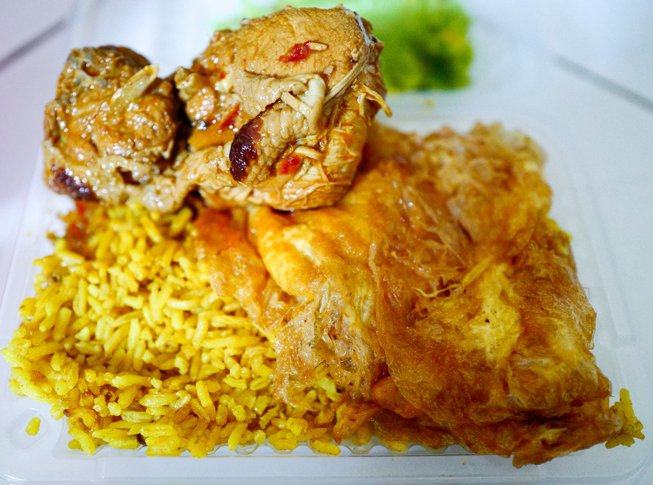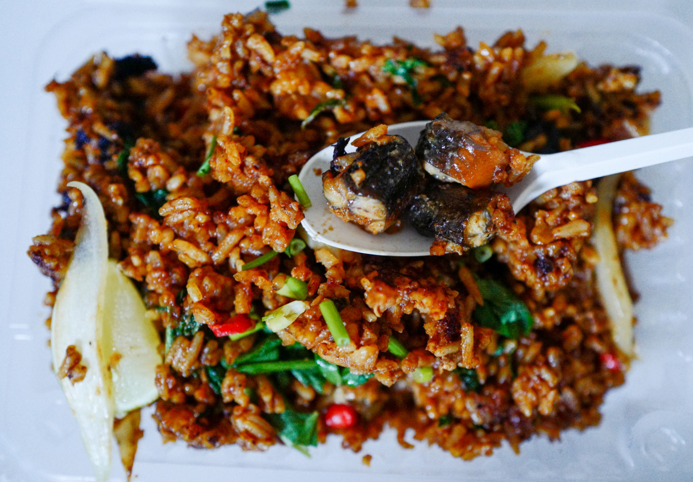 Rice recipes that straddle northeastern Malaysia and southern Thailand form the backbone of Nasi Kerabu Golok, a stall that's popular primarily for takeaways but is also on delivery platforms. Its more intriguing offerings include Nasi Khao Mok (the southern Thai version of biryani, though much less complex in its spices than India's, made yellow with turmeric and earthy with coriander roots), Nasi Berlauk (with Thai phat phet chicken, like a cross between gulai and asam pedas, brightened with kaffir lime leaves, served with not merely the chicken meat but with chunks of liver and gizzard too), and Nasi Goreng Belut (rice fried with bony morsels of eel - Malaysian eel, of course, not to be catfished for Japanese unagi).