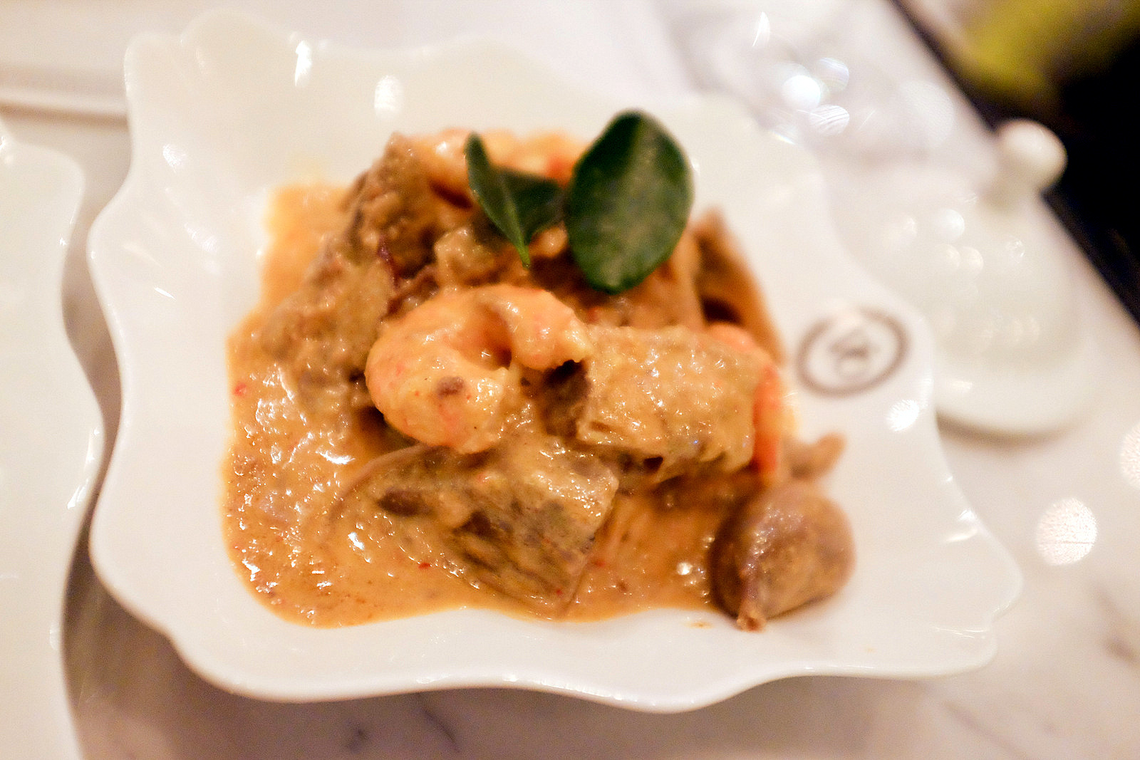 Spaghetti coated with an intensely aromatic buah keluak paste infused with cili padi, minced shrimp & coconut milk ($24) & a rice-noodle dry laksa tossed with tau pok, prawns & bean sprouts ($22) illustrate how the kitchen strives to strike a balance between a respect for culinary tradition & a resolution to bring contemporary relevance to heritage cooking. Both are a gut-punch to those of us spending in ringgit, but you won't find them in KL. And through it all, a mastery of the fundamentals shines through - the chicken rice is precisely how we love it, simultaneously firm & moist, with pronounced fragrance & flavours ($3).