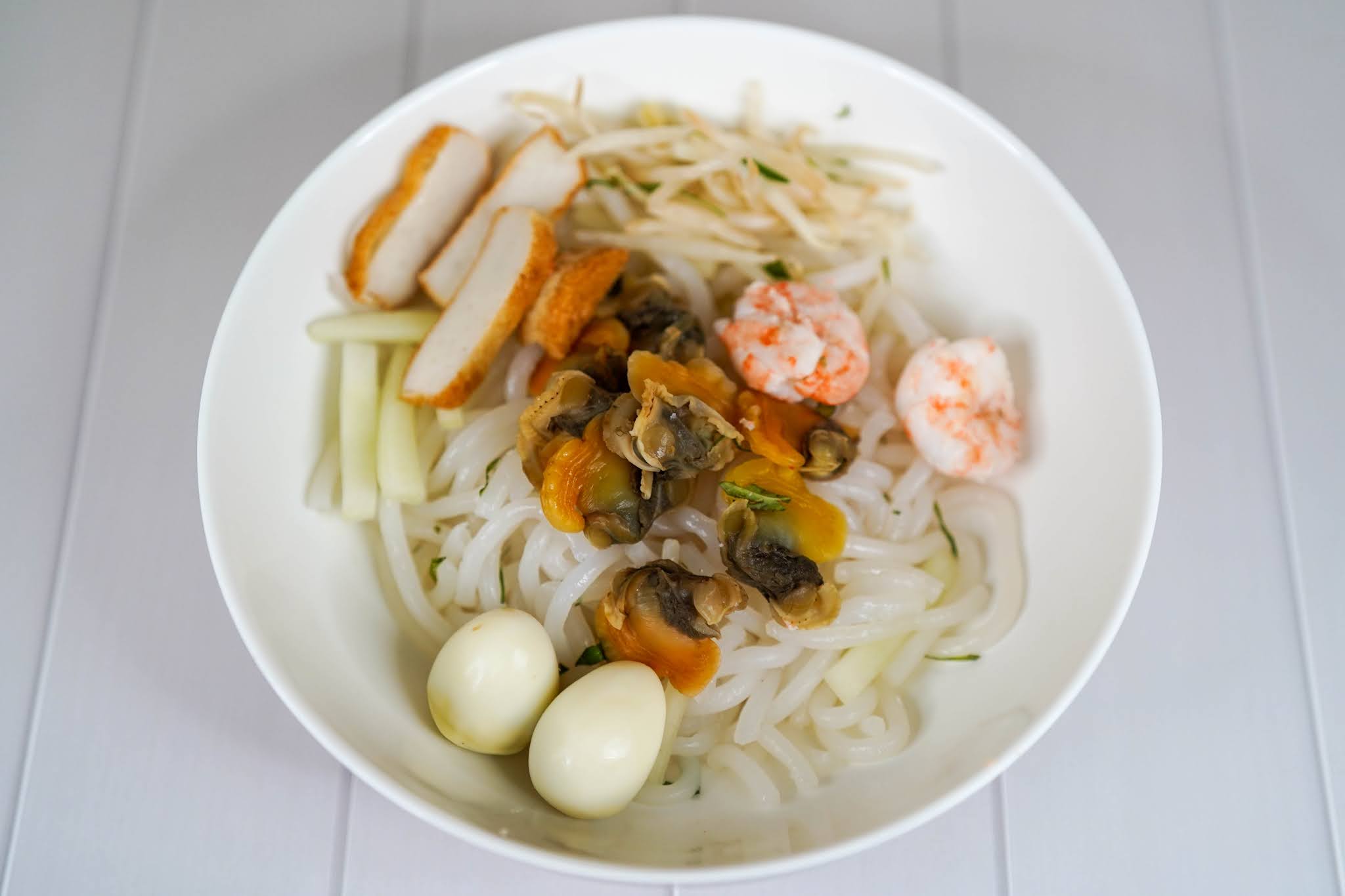 Thick rice noodles come with a seafood-based curry broth, light and extra-smooth but still satisfyingly creamy, making for a hearty laksa. It's well-topped with cockles, prawns, tenggiri slices and fish cakes for sufficient seafood, rounded out with quail eggs, tofu puffs, beansprouts, daun kesum and cucumber for a distinctive laksa that might be most closely compared to Nyonya-style laksa (RM15).
