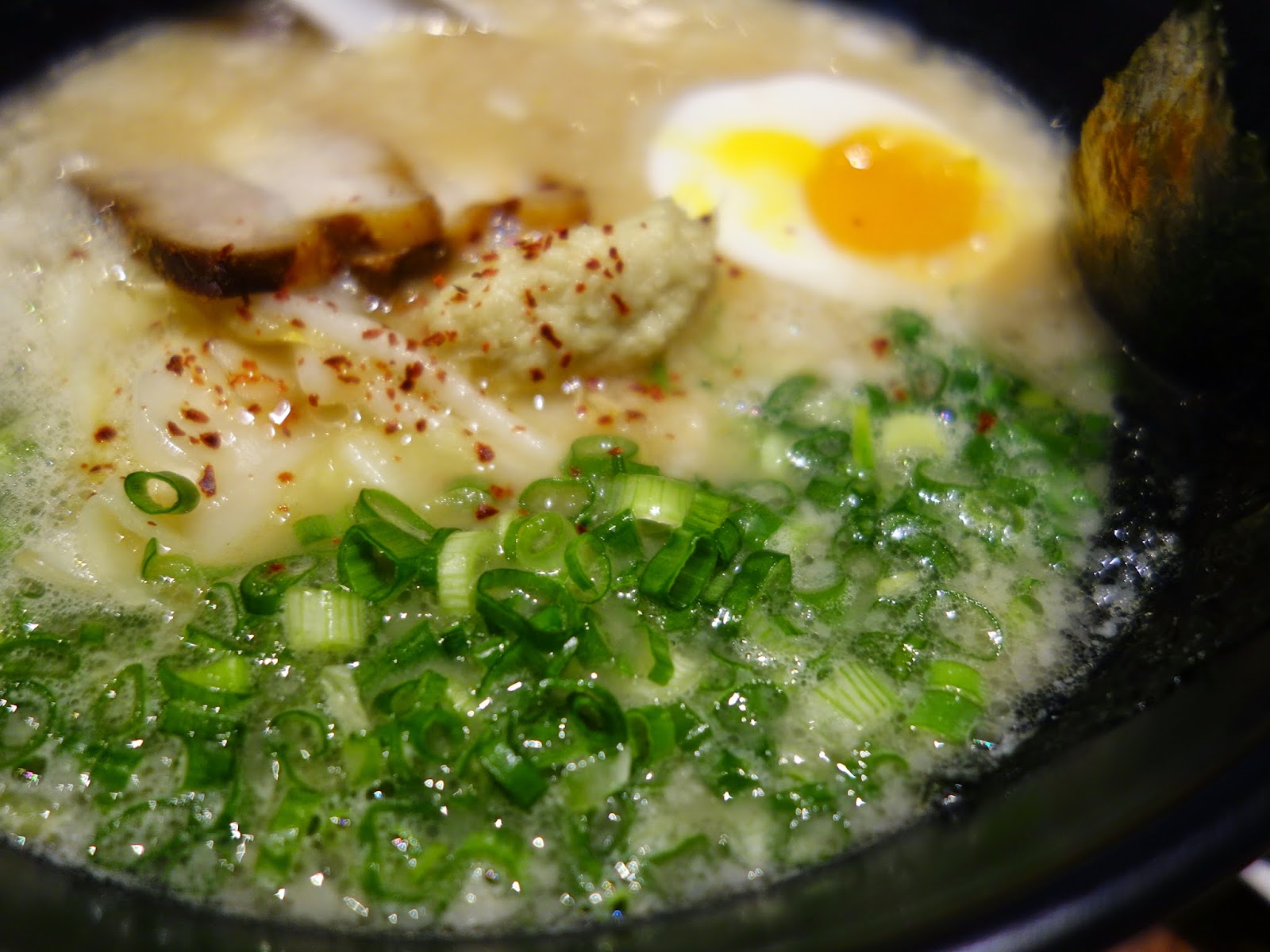 The main event: The chef's special ramen for this round is misoshiromaru (RM26++), featuring flat, medium-thick noodles in tonkotsu broth blended with miso paste, The secret weapon in this bowl: Freshly grated ginger, for a lovely kick to the flavour.