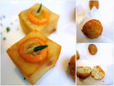 Cant leave without light bites: Deep-fried potato cubes with garlic & salsa brava sauces, alongside practically perfect croquettes of gorgonzola cheese & bacon.