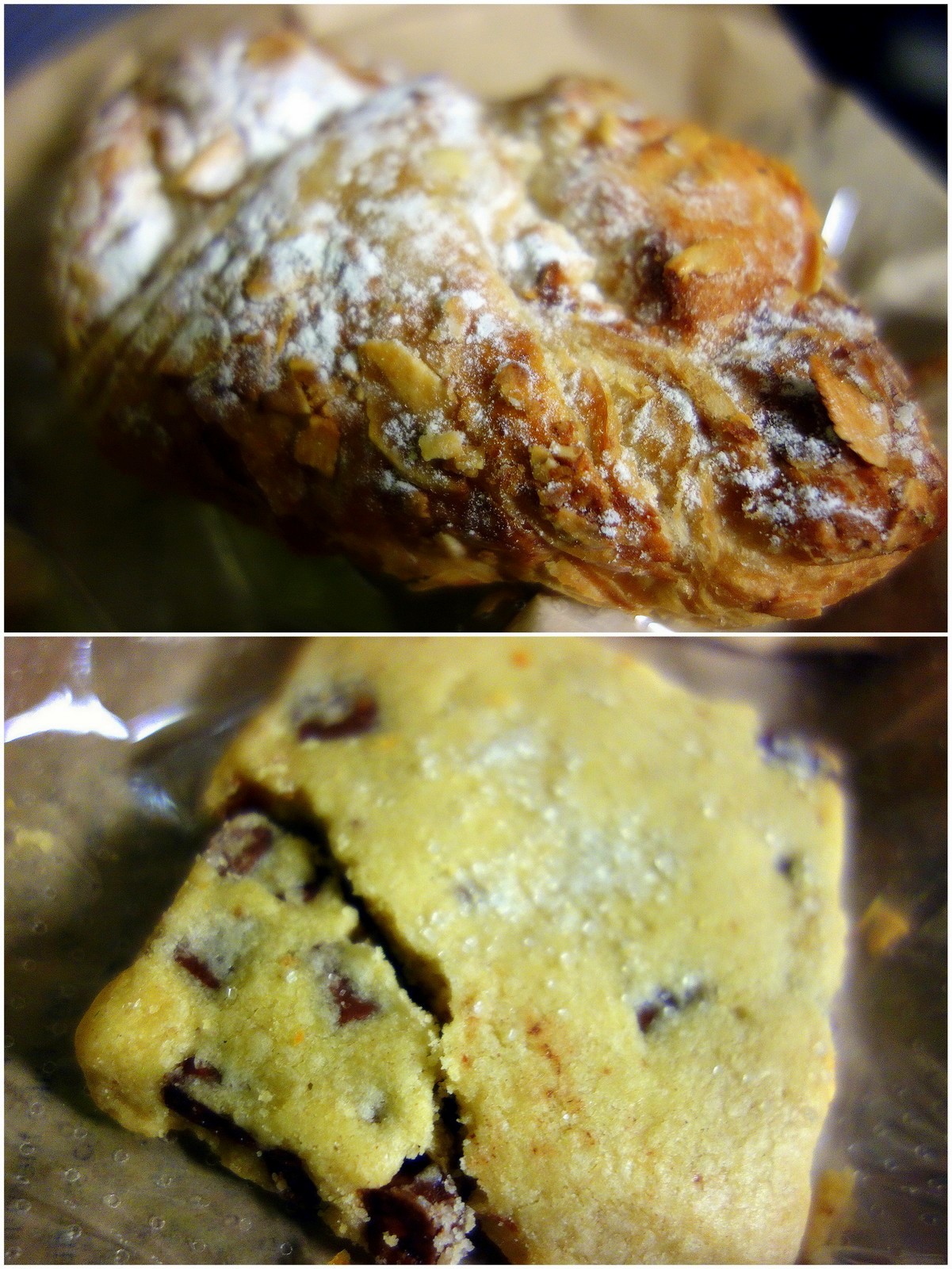Almond croissant & choc chip shortbread. Caveat: Weve purchased these pastries at various hours over the past two weeks, learning eventually that they taste terrific when bought at 11am, but the stock thats left at night (with a 50 percent discount) has clearly faded in freshness.