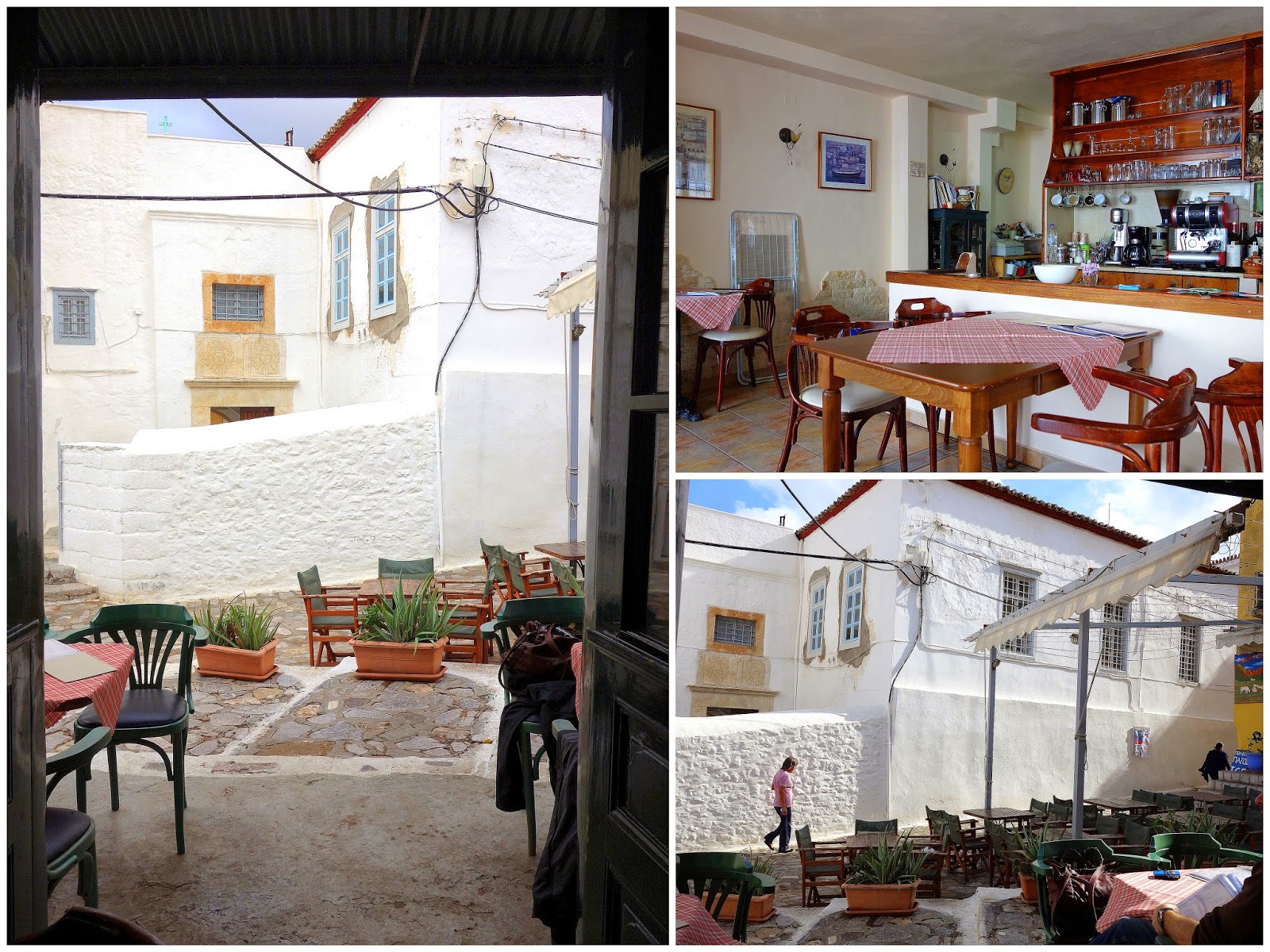 We have many hours here. The boat brought us over in the morning; there's none returning to Athens until late in the evening. We take slow steps through streets that wind into the heart of Hydra. We pass whitewashed homes, photograph them & look out for spots to eat, ending up at Ostria, a tavern owned by married couple Stathis & Tassoula.