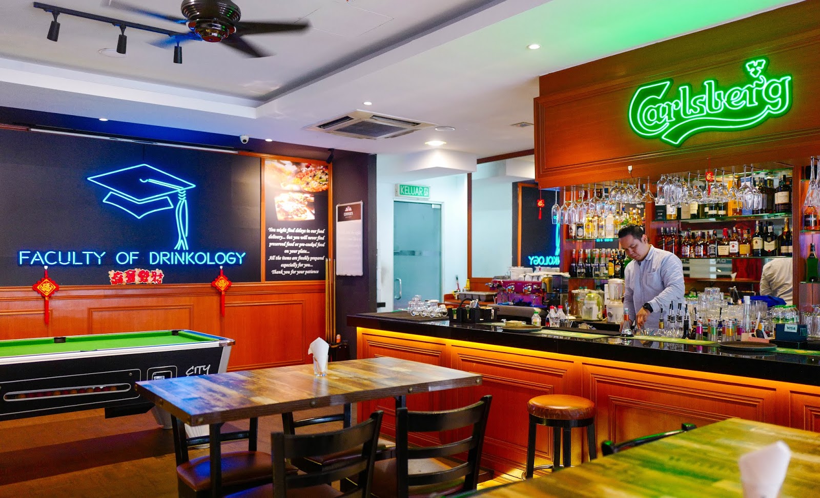 It's no surprise that Oxford Classic Lounge serves British-inspired pub grub like pork sausages blanketed in deep-fried bacon (RM16), but its culinary colonisation stretches to Asia as well with char koay teow with prawns and squid (RM11.90) and thickly battered chicken skin seasoned with Japanese togarashi spices and paired with Thai chilli sauce (RM8.20) - fuss-free fare at pleasant prices. Cocktails span the Westminster-themed Backbenchers (rum with whisky and tequila) and no-varsity-blues Flying Colours (with Bols lychee and strawberry liqueurs).