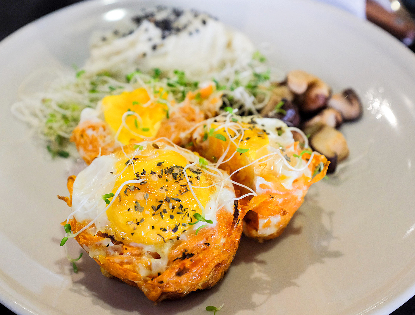 Paleolicious offers a solid mix of Western & Korean concoctions, wholesome & tasty. We'd happily endorse the eggs in a crusty sweet potato nest, paired with mashed cauliflower (RM12.90 in a set with pandan lemongrass tea); the Paleo bibimbap, with a base of grated cauliflower instead of regular rice (RM15.90 with a juice); & the Paleo Sausage Egg 'McMuffin,' with a tender, textured minced chicken patty made in Paleolicious' kitchen, thickly topped with guacamole, sandwiched in between two eggs instead of bread buns (RM19.90). The rest of the menu comprises choices like pistachio-crusted salmon, sweet potato noodles & gluten-free banana pancakes. The food may take extra time to emerge, but everything's assembled to order, coming out warm & well-prepared enough to warrant the wait.