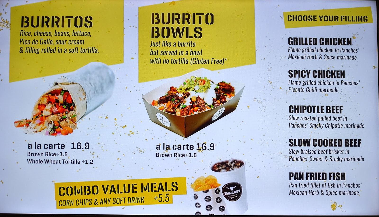 Panchos' burritos are possibly even more enjoyable; have 'em rolled in a warm, whole-wheat tortilla or in a cardboard 'bowl' without the tortilla; either is hearty enough for a filling meal at RM16.90. While Mexican food has its admirers in KL, it still boasts more of a cult following than true mass appeal; Panchos' accessibility - extending to its easy-to-like flavours, its fair prices & convenient venue near the GSC multiplex's ticketing counter - could play a part in promoting a Mexican food wave.