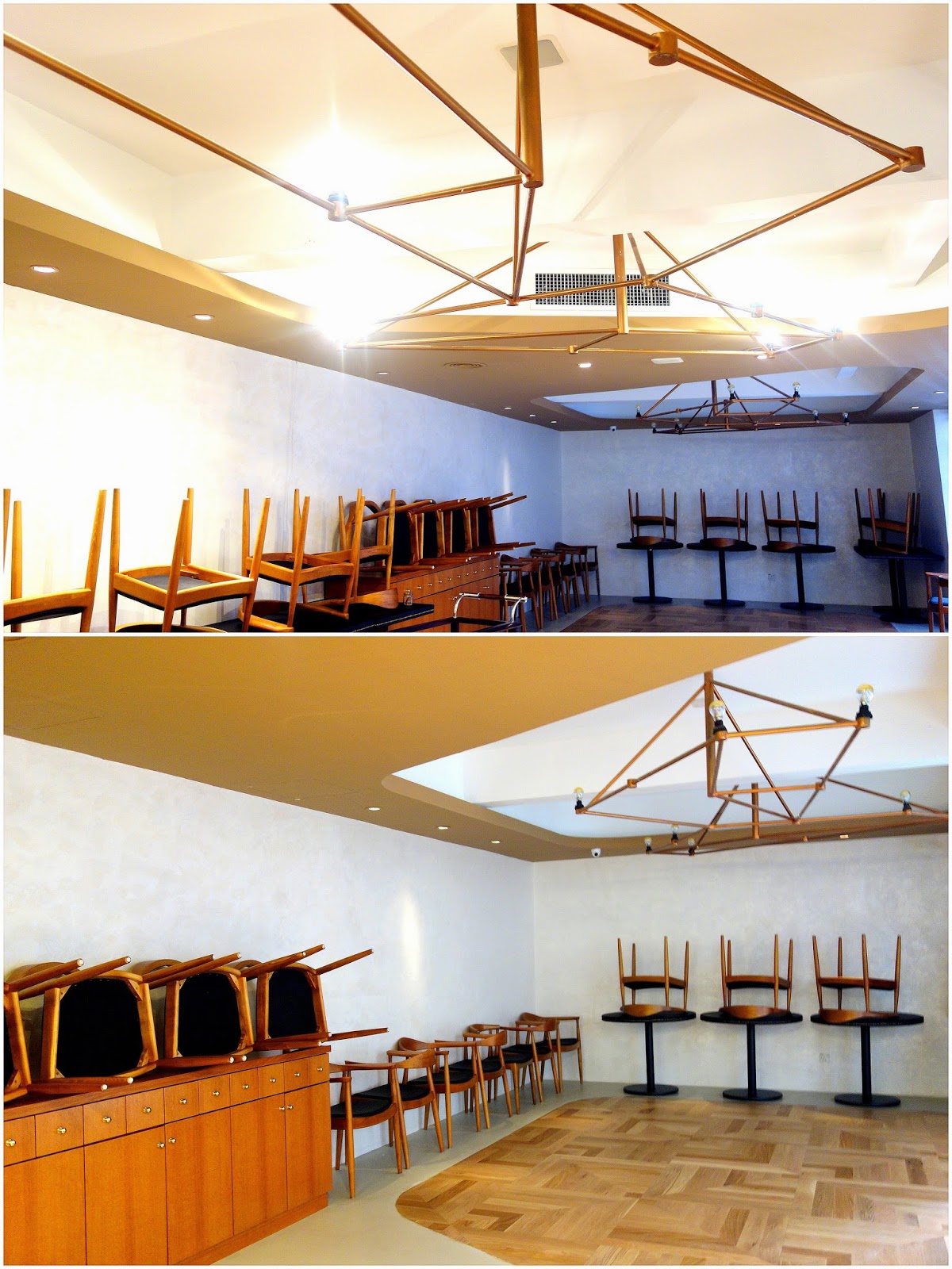 Still a work in progress when we visited, but it's now easier to envision what the final look might be: Restaurant DC's ground floor is billed 'Le Comptoir' - with a long counter dominating what's meant to be a relatively casual space where customers can get up close & personal with the restaurant's chefs & their work.